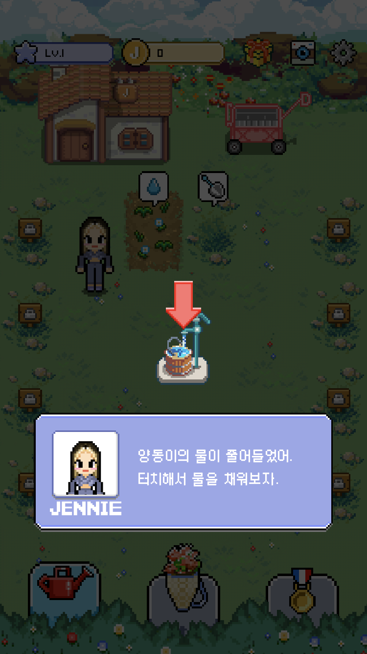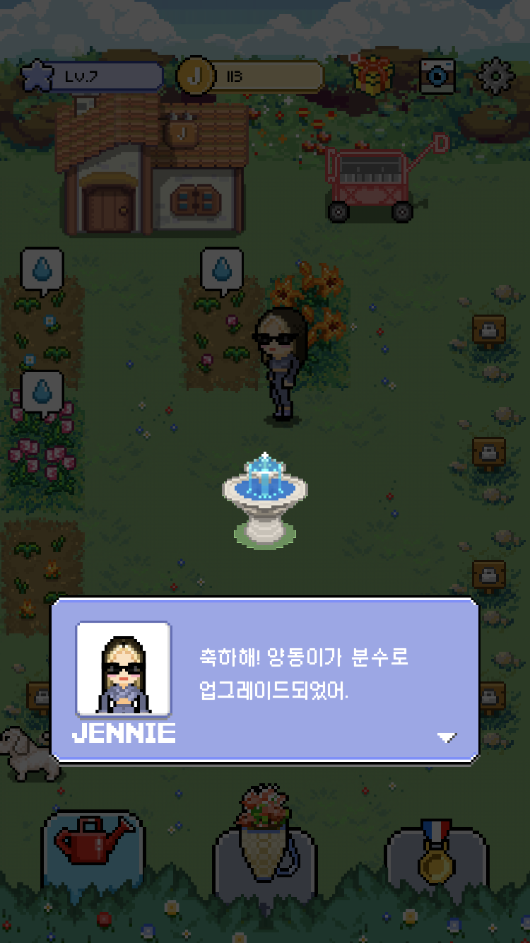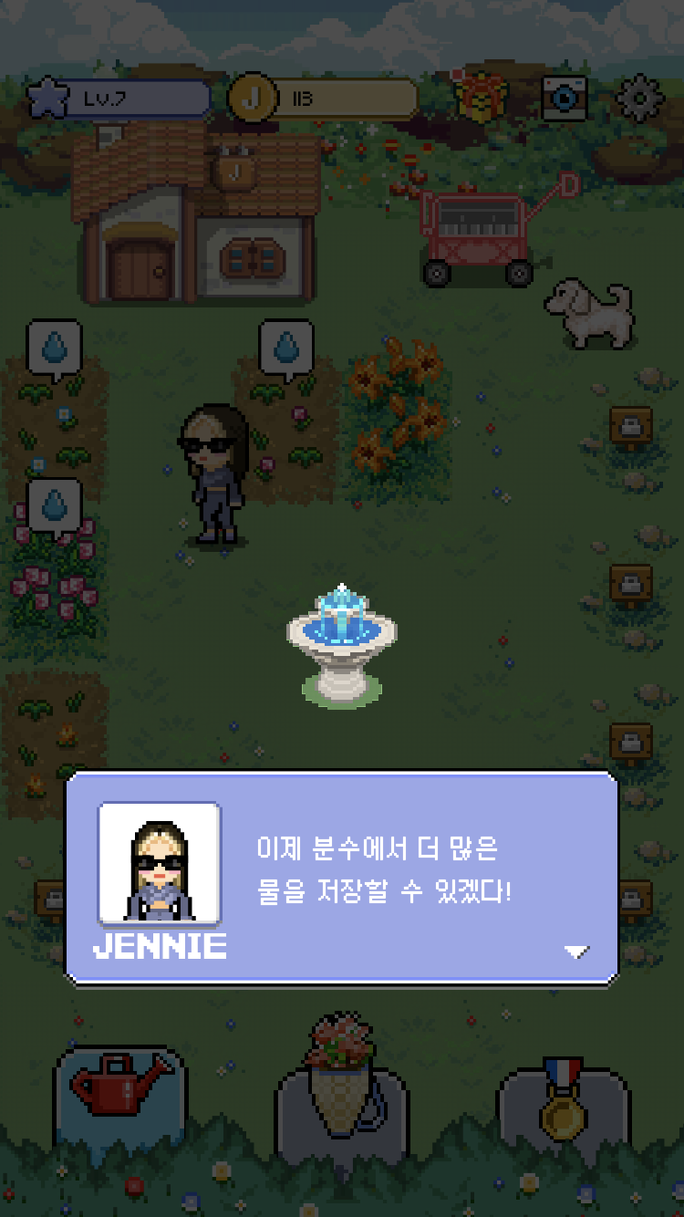양동이에 물 길러쓸때 물이 금방금방 떨어져서 손이 엄청 바빴는데 마침 물을 더 많이 담을수 있는 분수대로 업그레이드됨