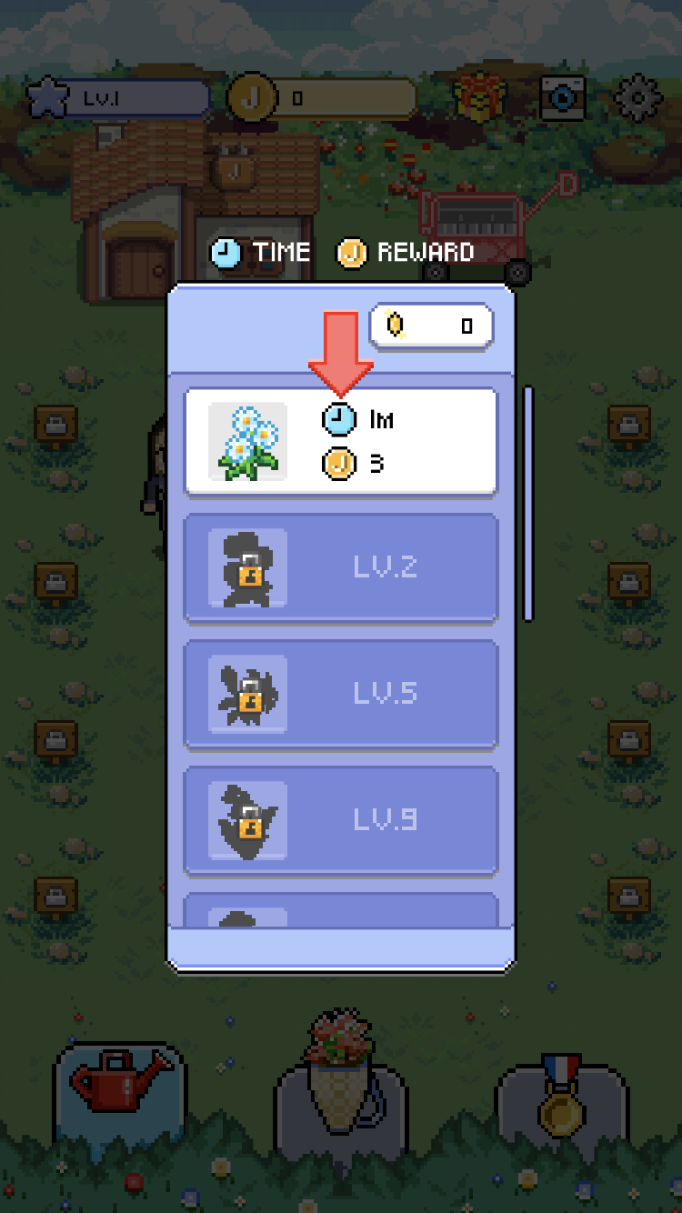 처음에는 레벨이 낮아 한종류만 심을수 있음