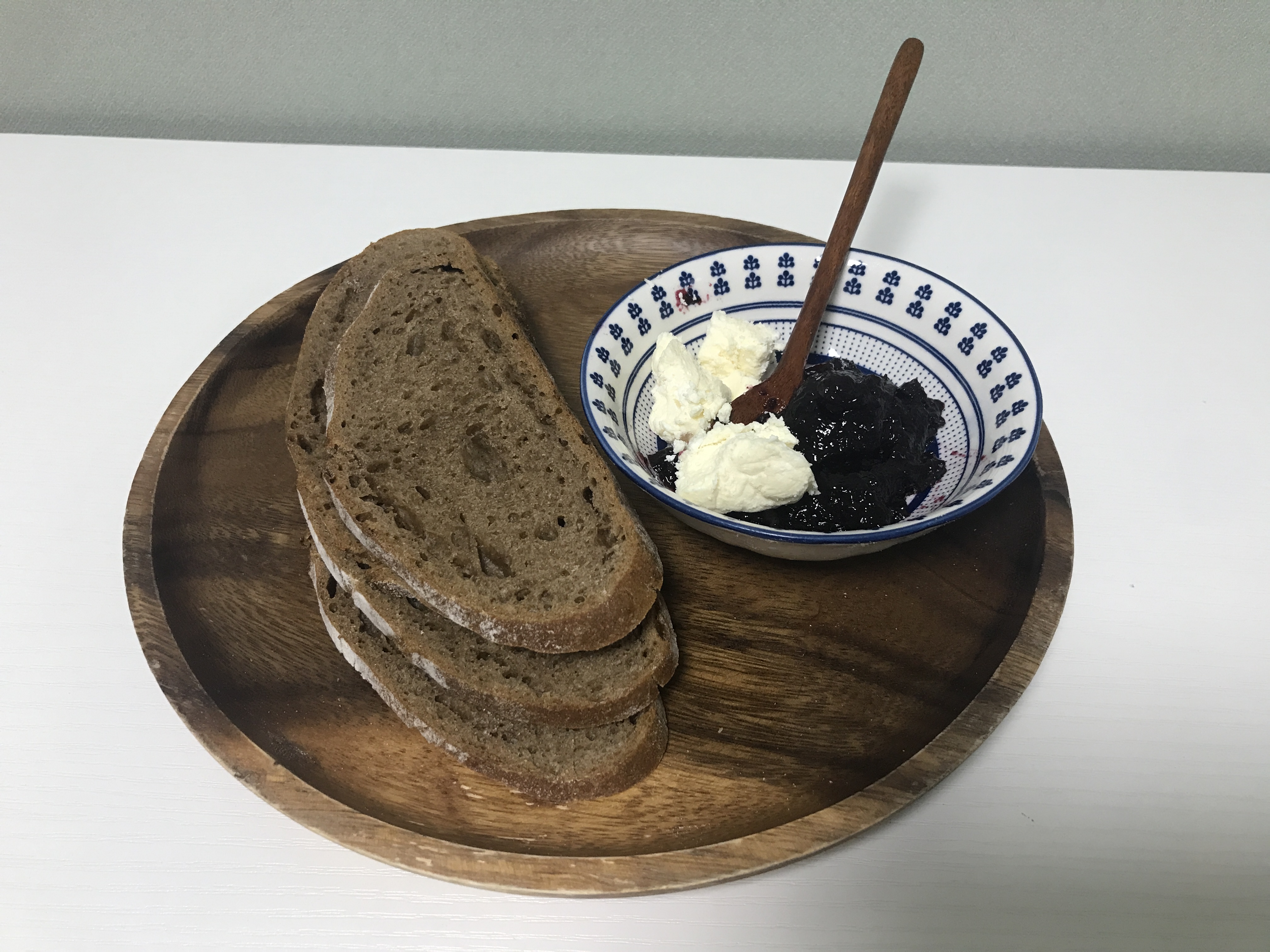 그리고 오빠가 준비해준 호밀빵과 코티지치즈(가벼운 맛을 가진 영국스타일 생치즈),블루베리잼 콤보 ㅎㅎ