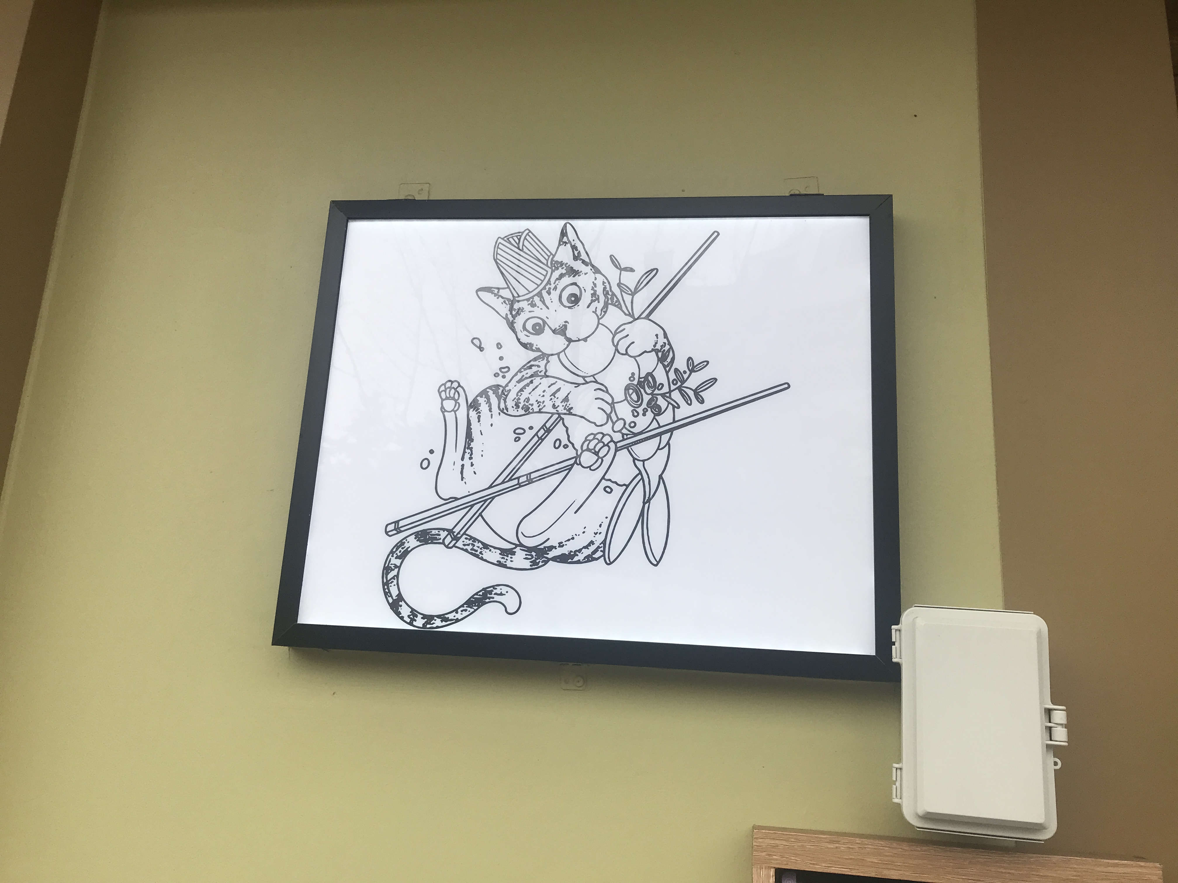 센스백단 고양이 그림이 여기저기 걸려있어