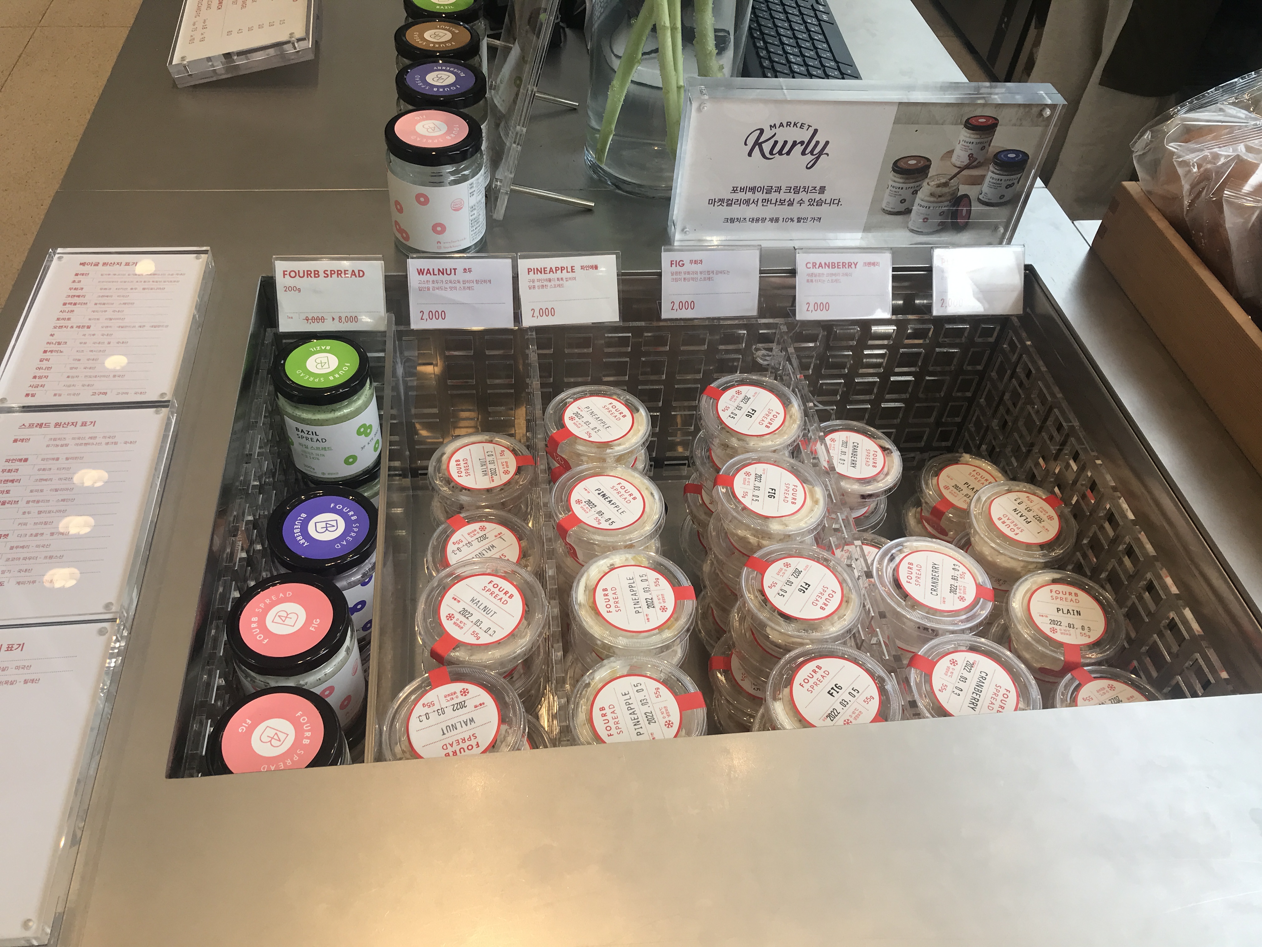 베이글에 발라먹을수 있는 크림치즈도 다양하게 있고