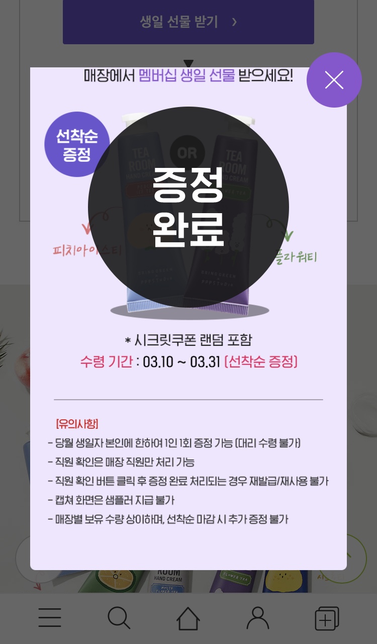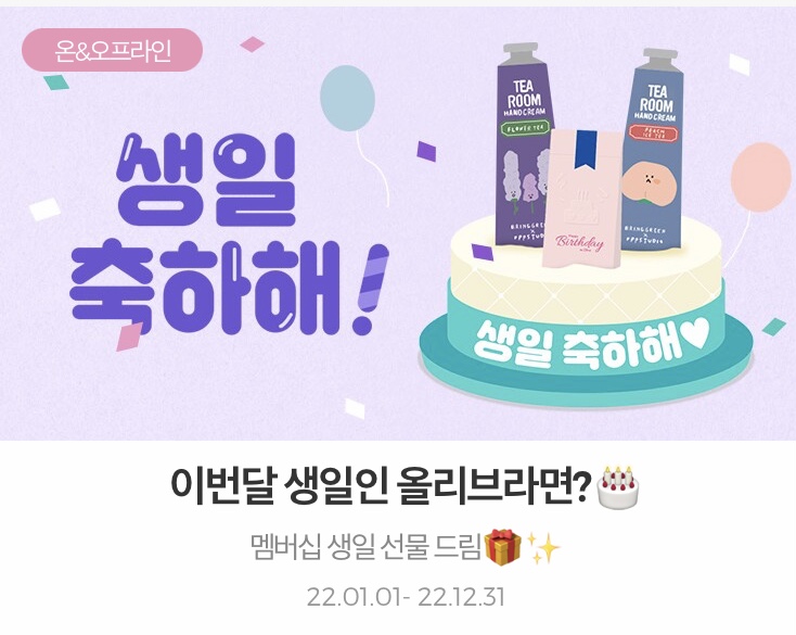올영에서 생일인 달에 핸드크림을 선물 주는 이벤트가 있어 가까운 올리브영 매장에 들려서 픽업완료 ㅎㅎ