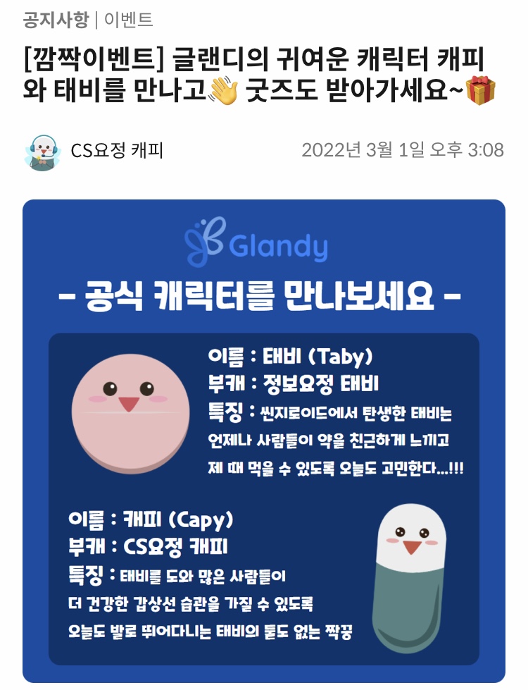 3월초에 참여한 글랜디 굿즈 출시 기념 이벤트 ㅎㅎ