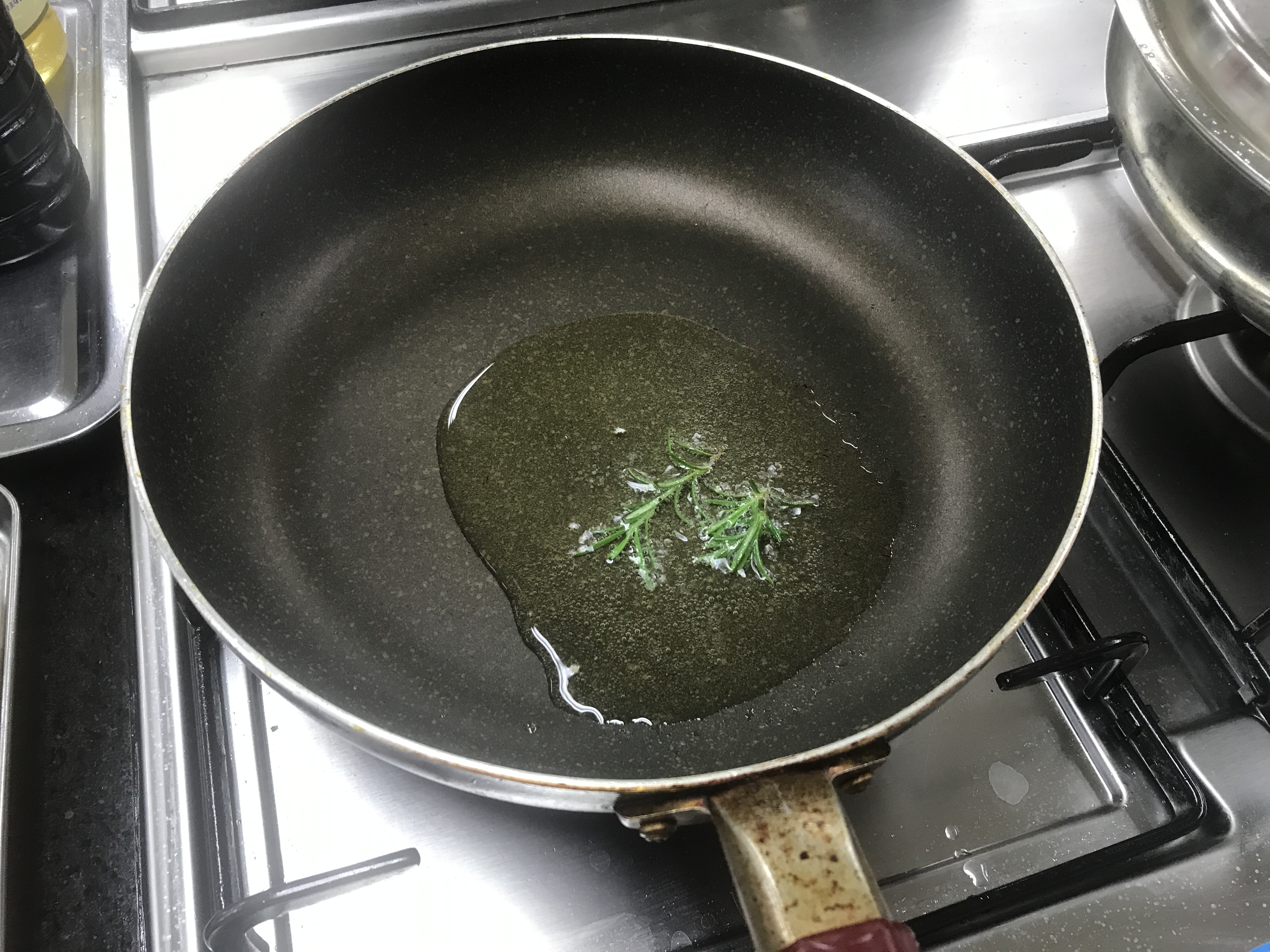 오일에 로즈마리로 향내고 치킨 굽기