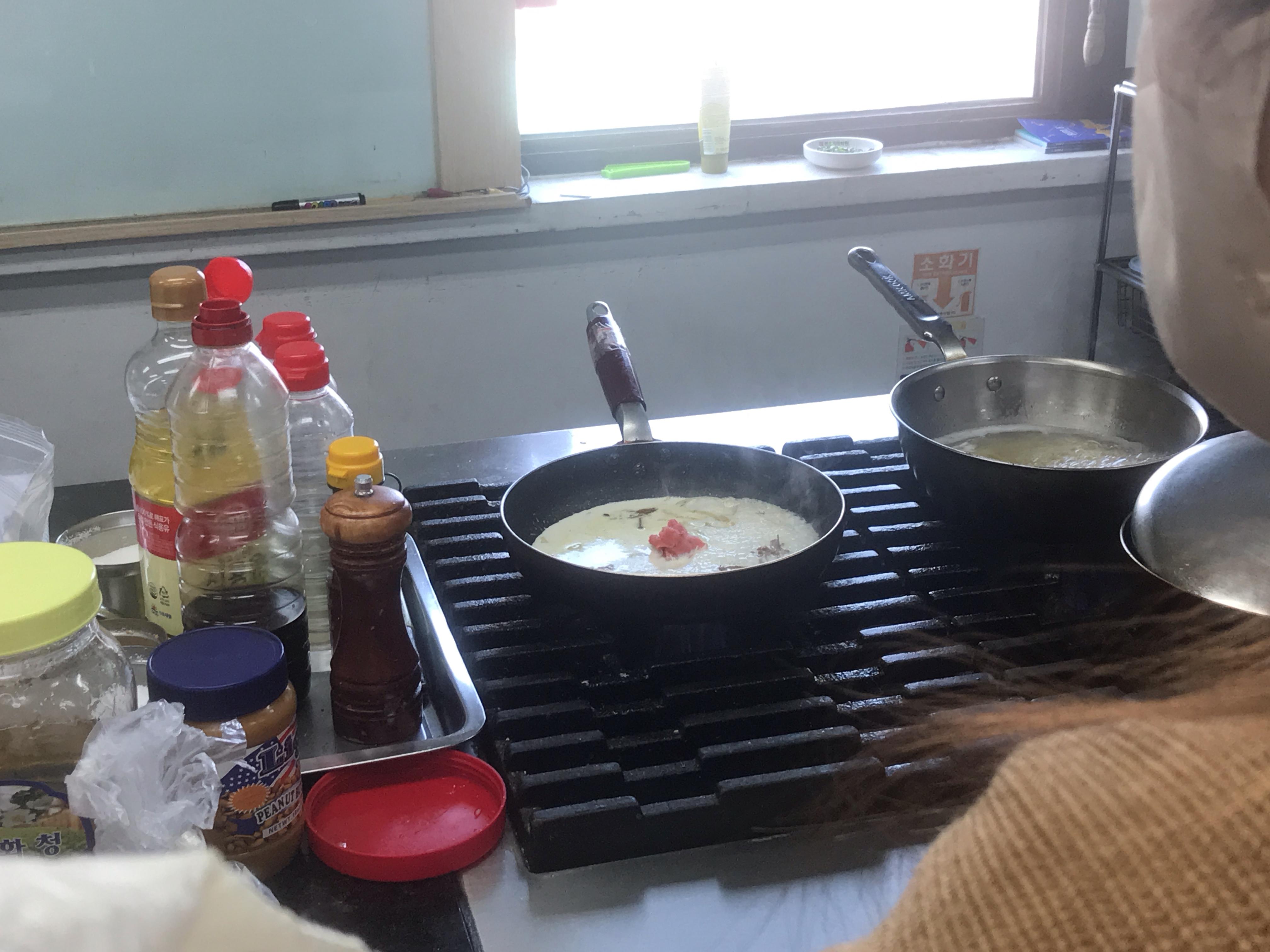 재료 볶다가 생크림:우유=3:2 넣어주기