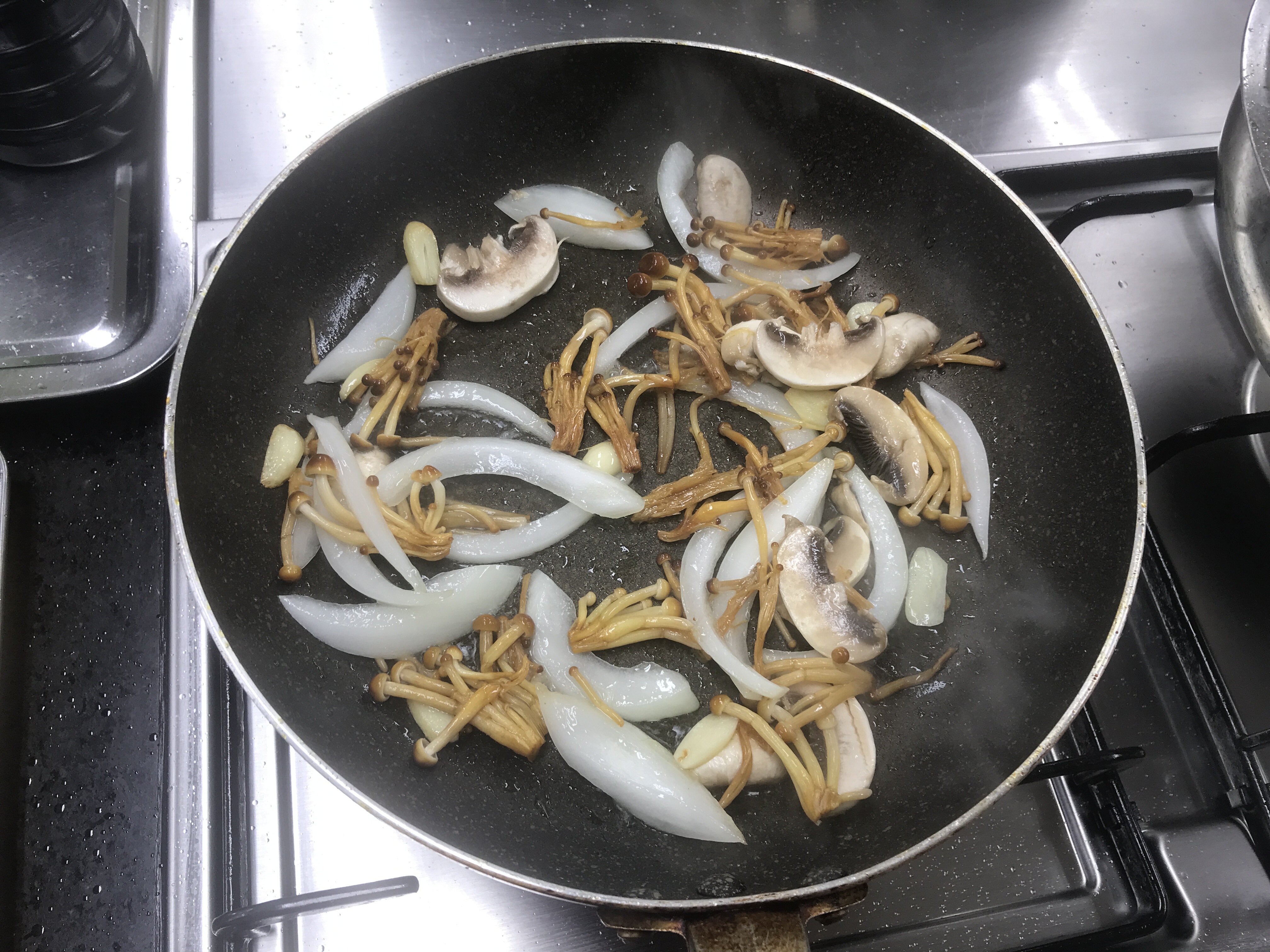 부재료로 대충 마늘 버섯 양파를 넣으셨던거같다