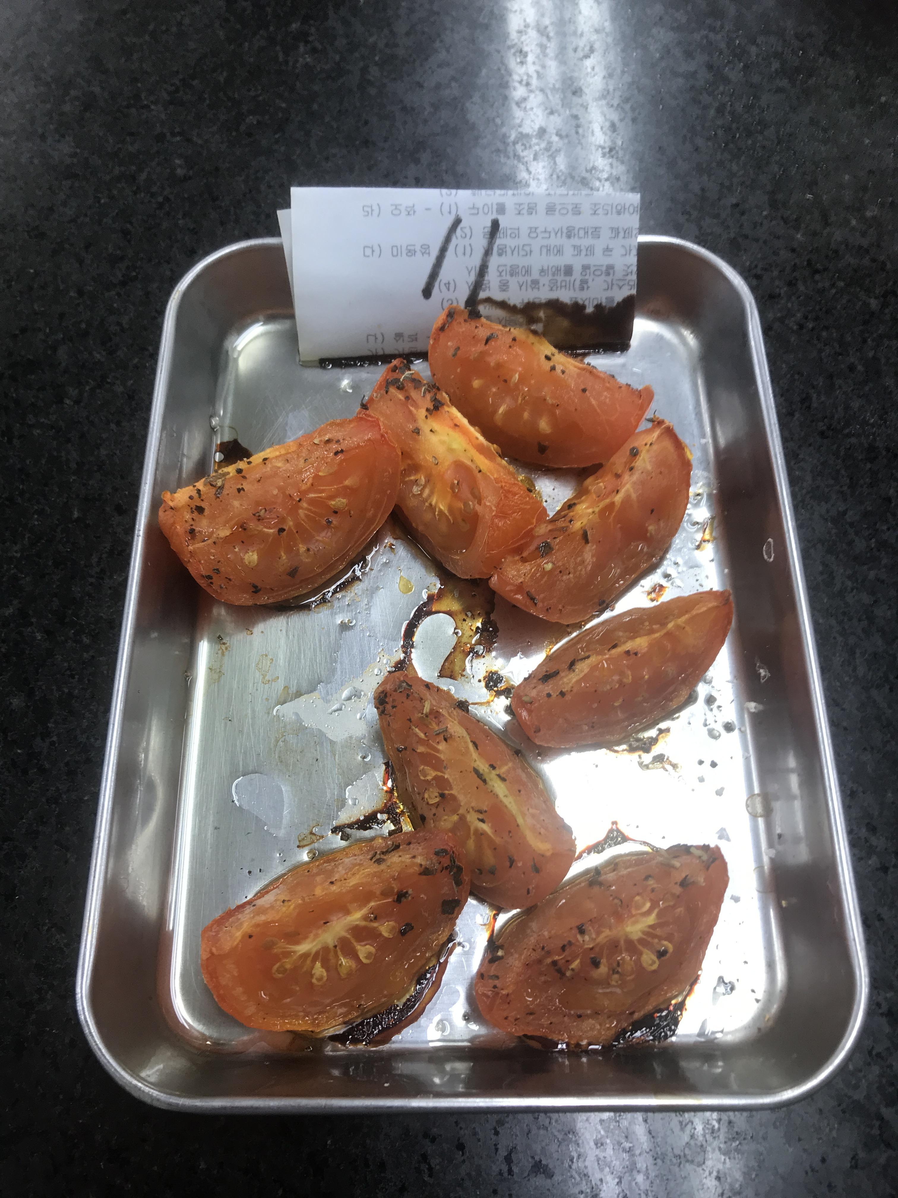 오븐에 건조시키고 있는 토마토만 합체하면