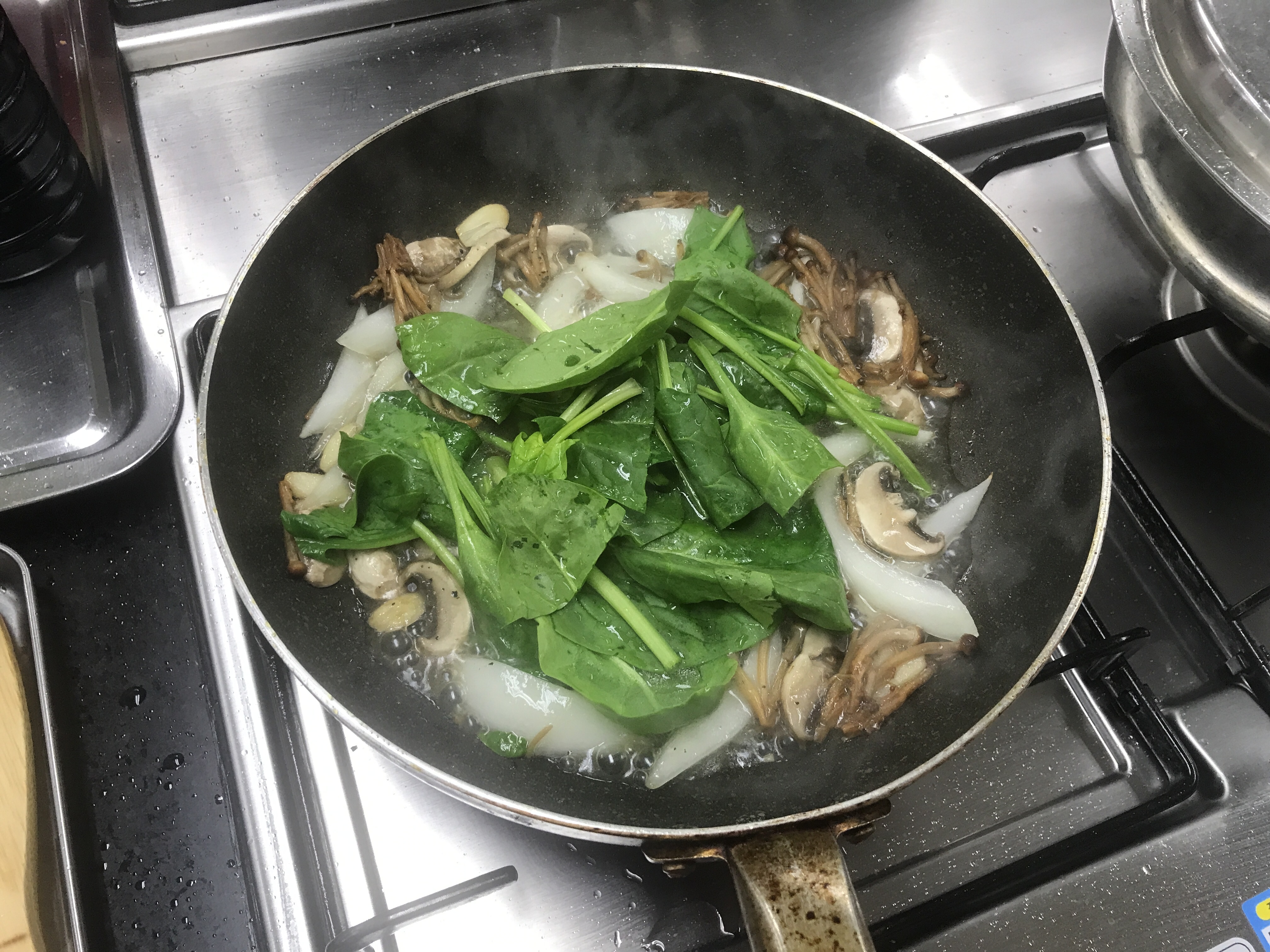 시금치 넣고는 잘 익게 물 조금 같이 넣어 볶기