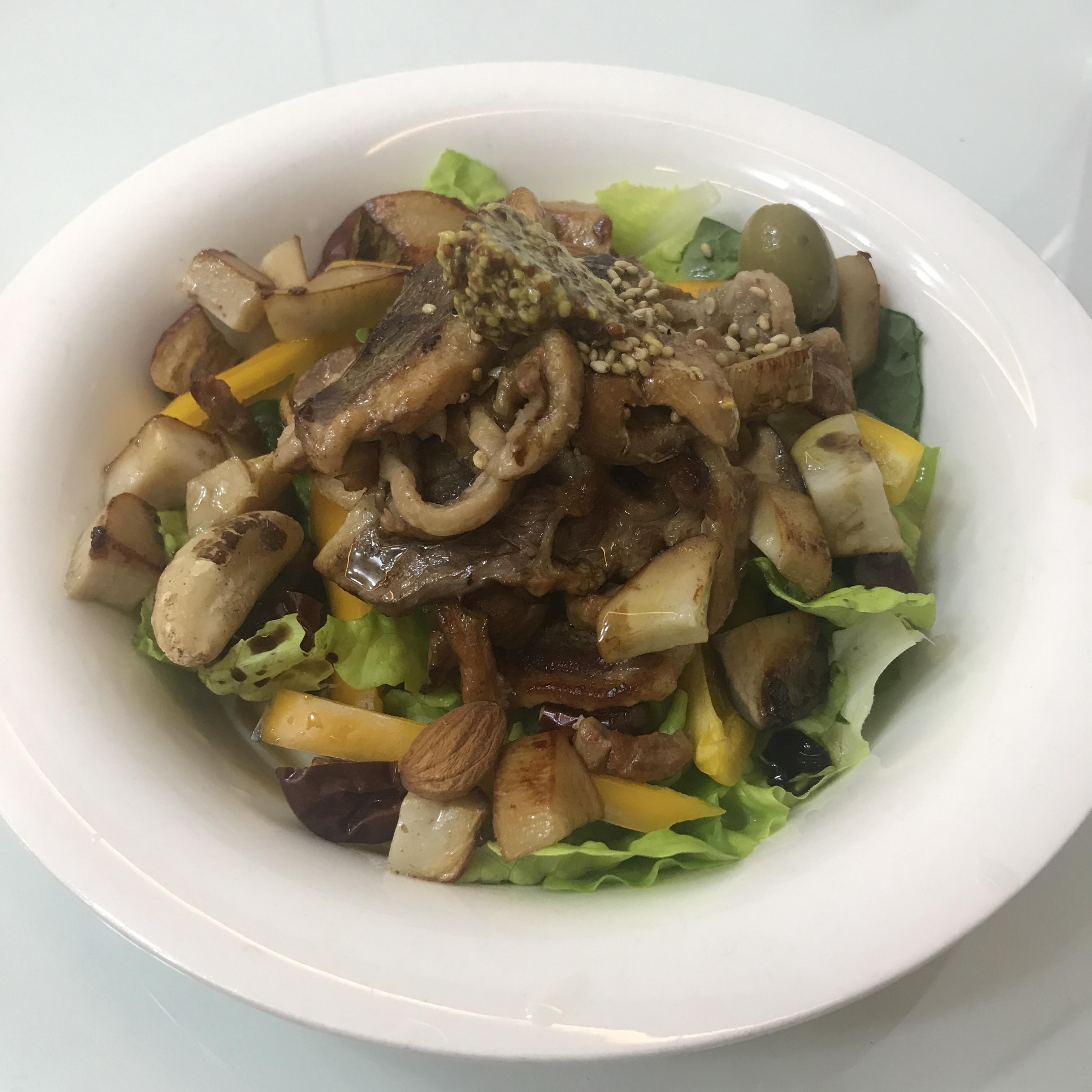 재료 : 생오리고기 송이버섯 버터헤드레튜스 케일 건대추 그린올리브 미니파프리카 구운아몬드 브라질너트 참깨 디종홀그레인머스터드 올리브오일 발사믹식초