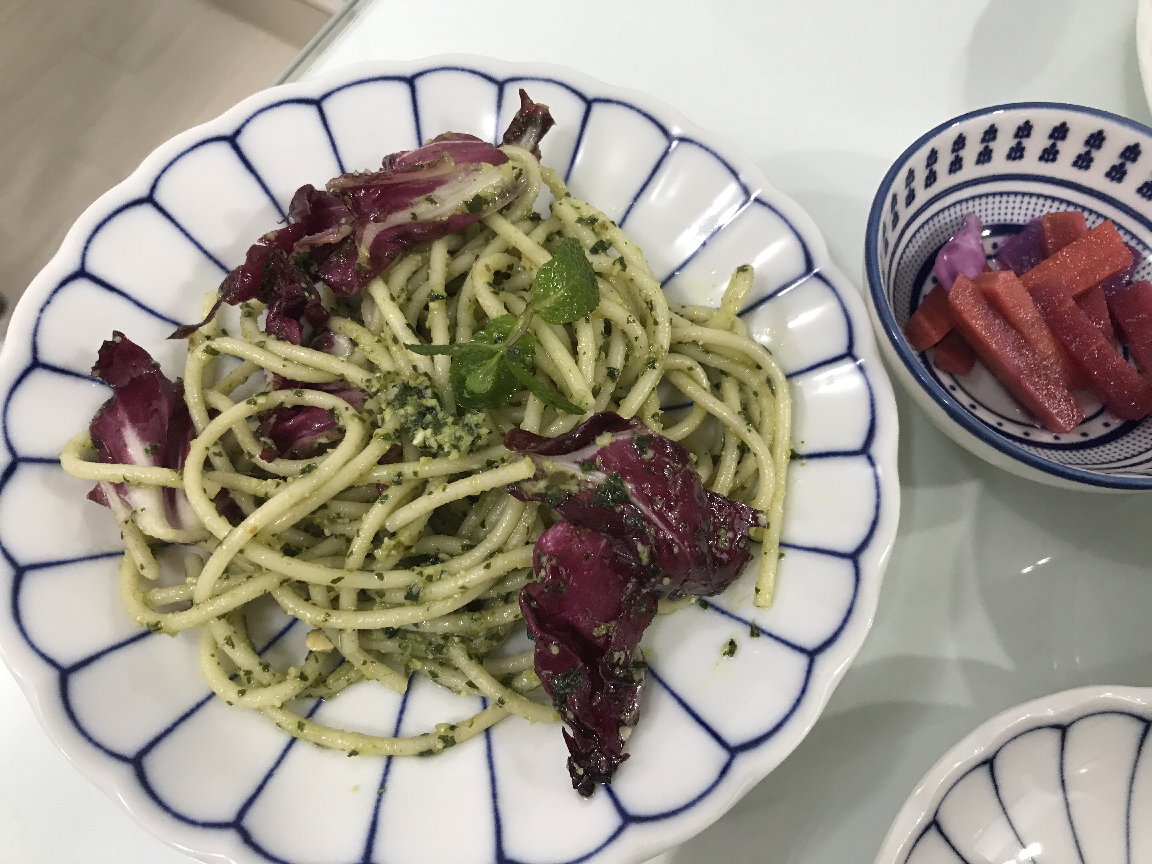 저녁에 전채로 깻잎페스토 파스타 먹기 ㅎㅎ