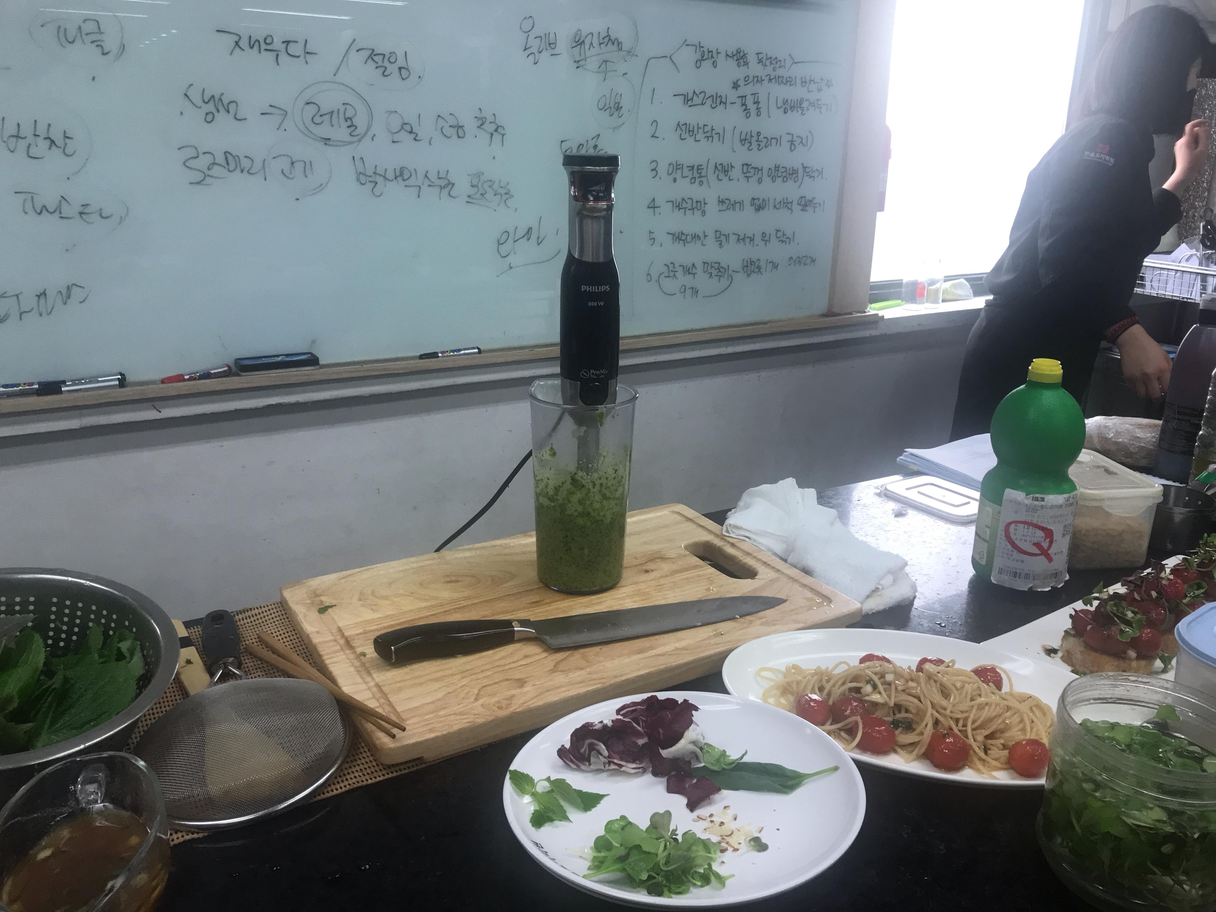 시연만 한거라 깻잎페스토 한스푼씩 나눠주심 ㅎㅎ