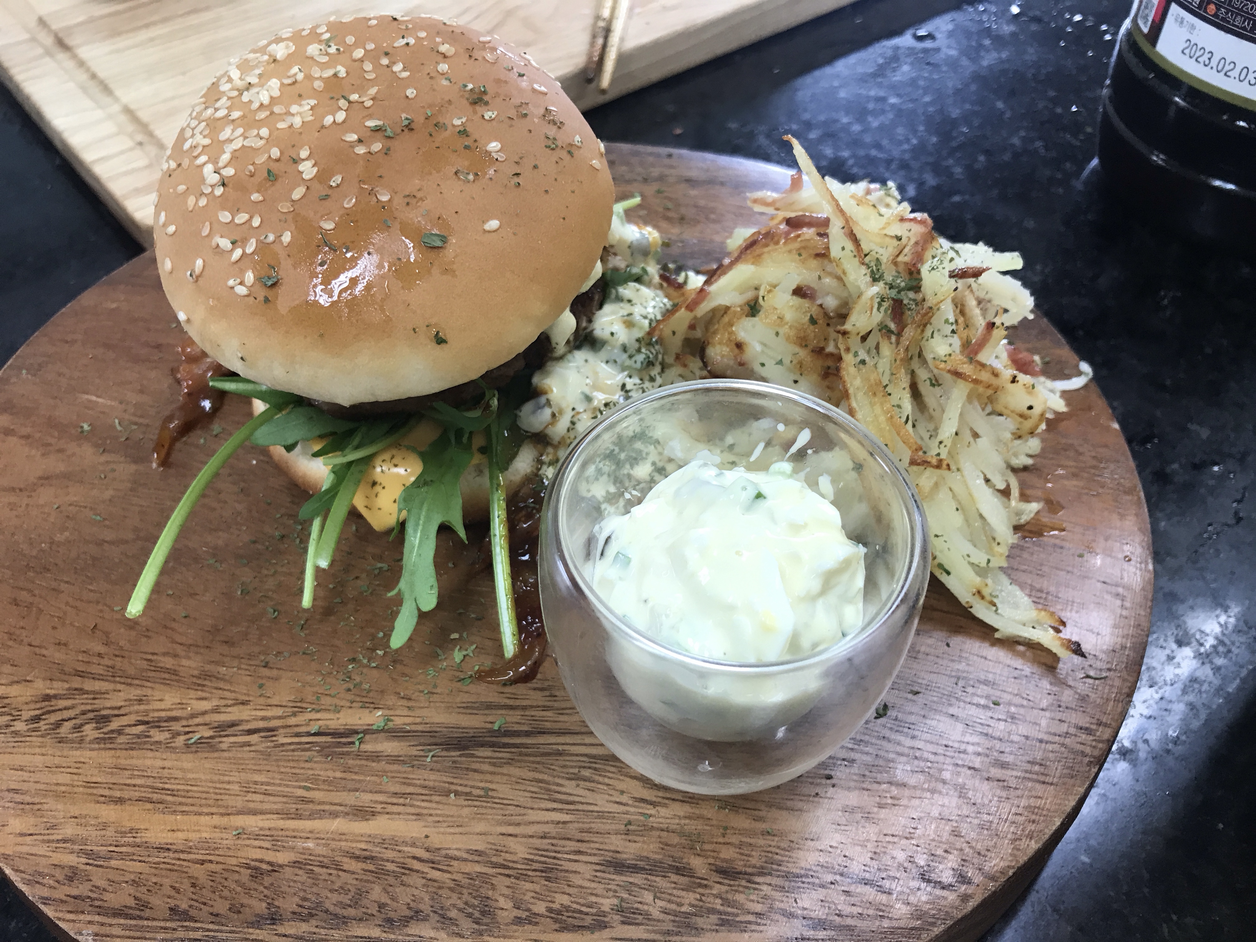 베이컨 햄과 타르타르소스 올린 수제햄버거와 뢰스터 세트 완성 :)