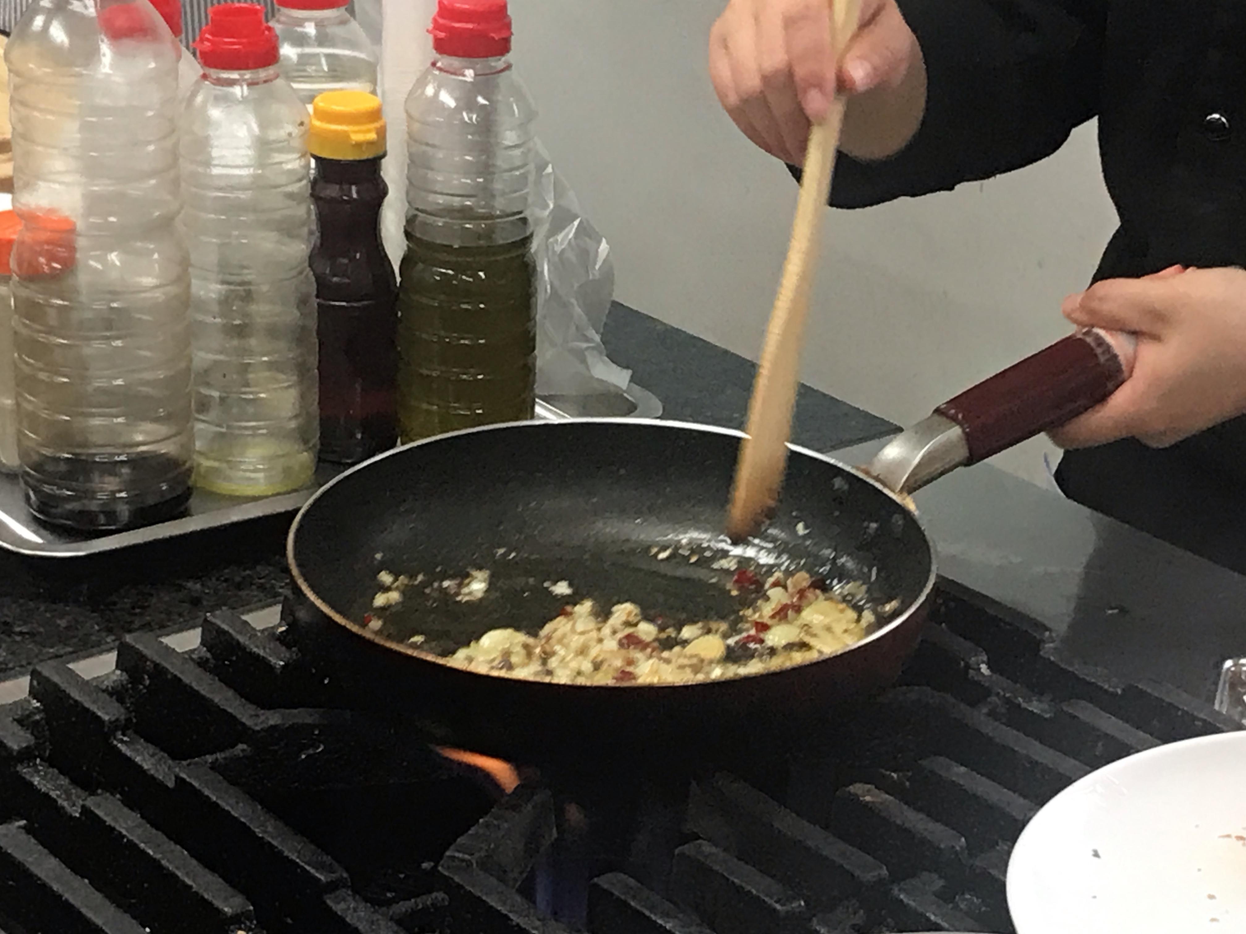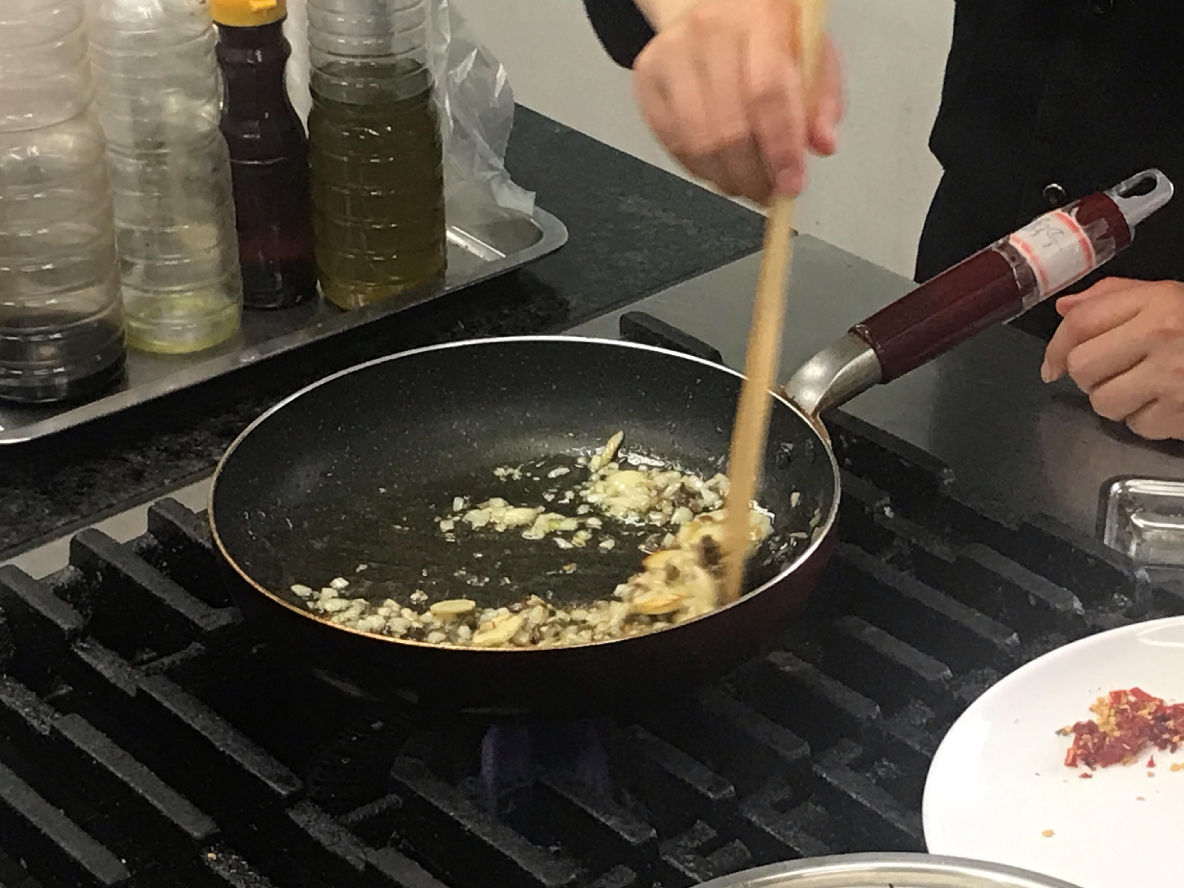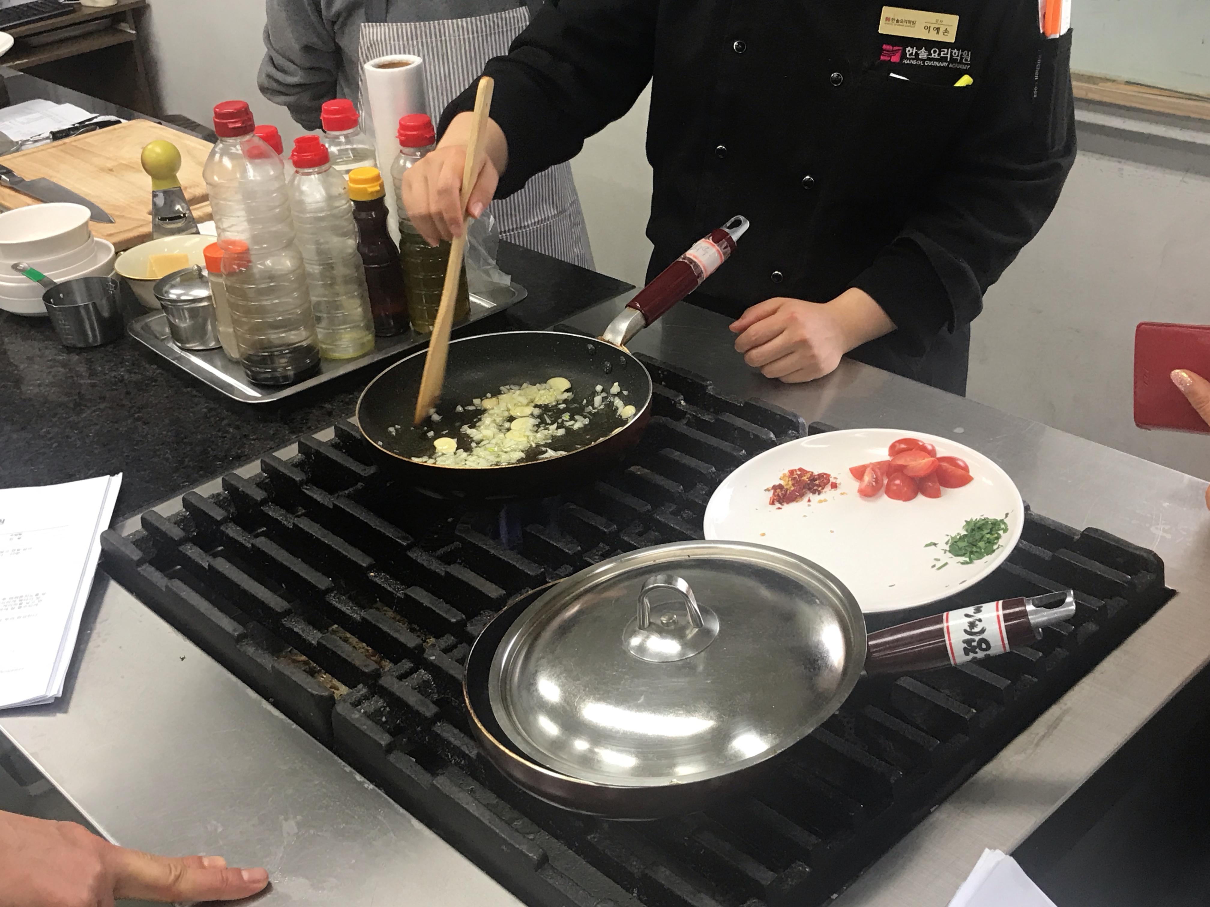 올리브오일에 다진 마늘과 양파를 볶다가