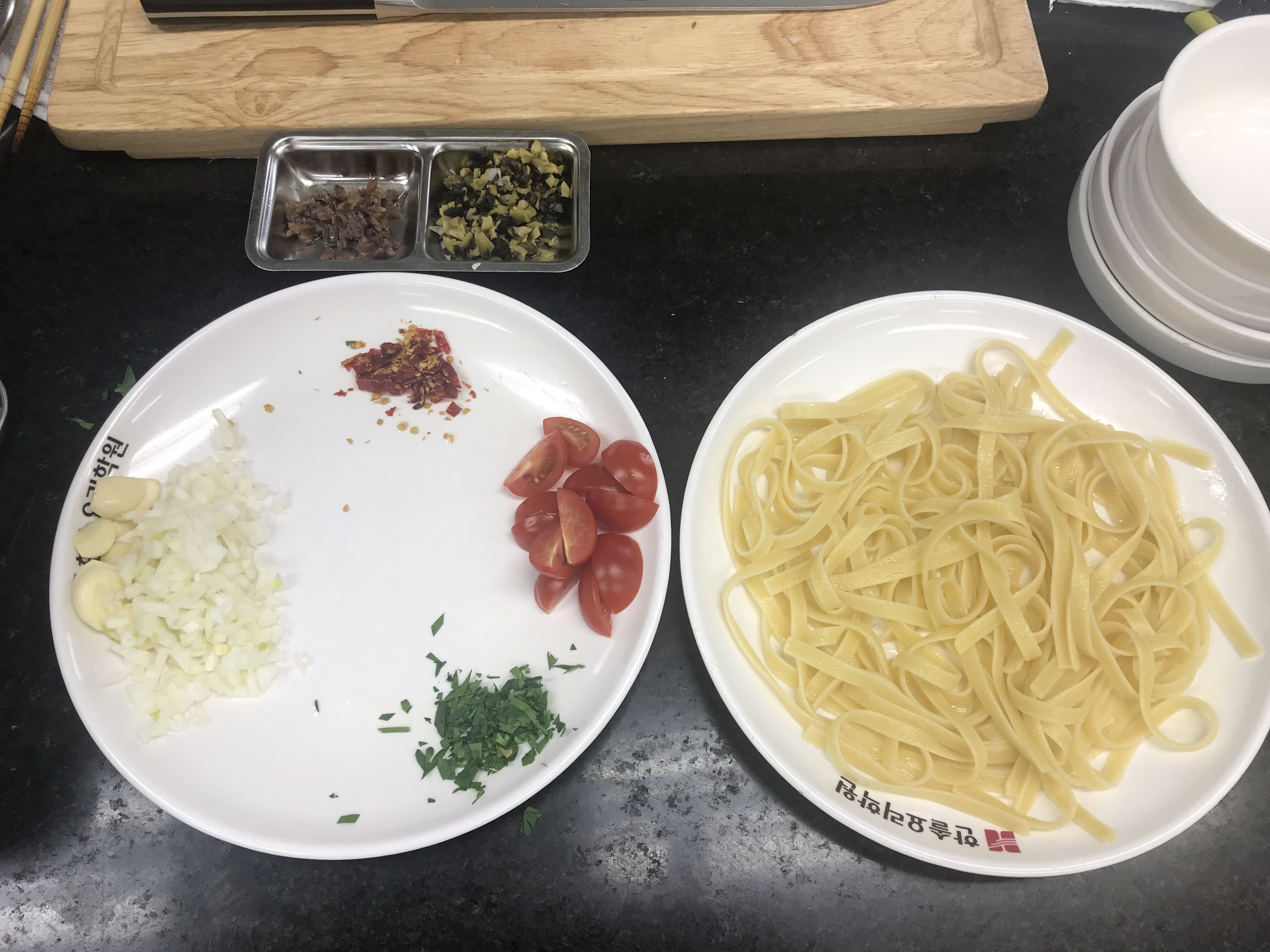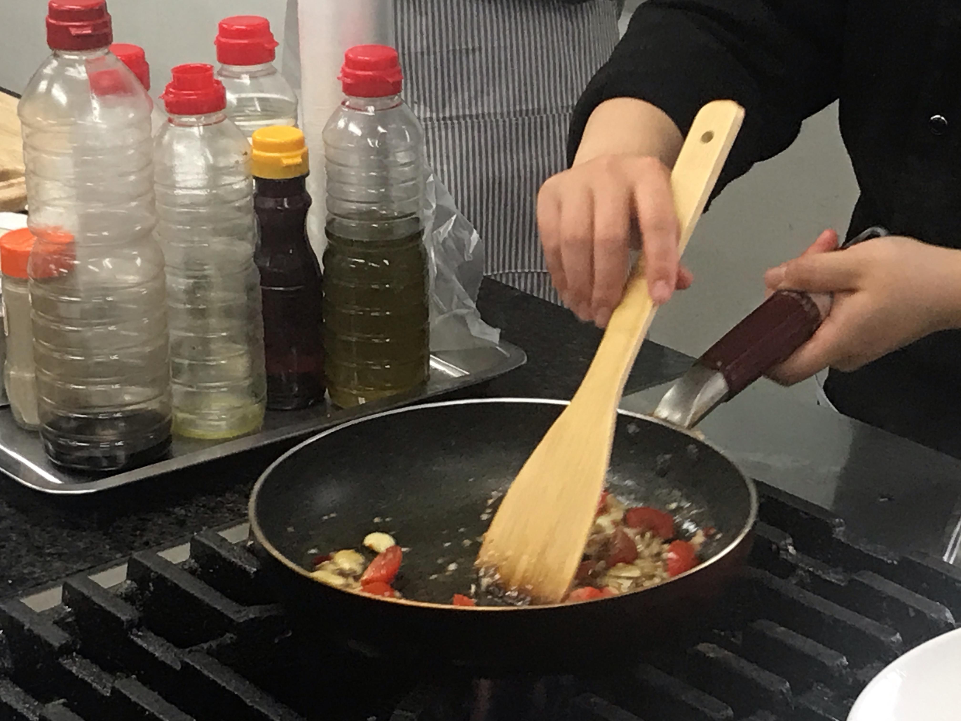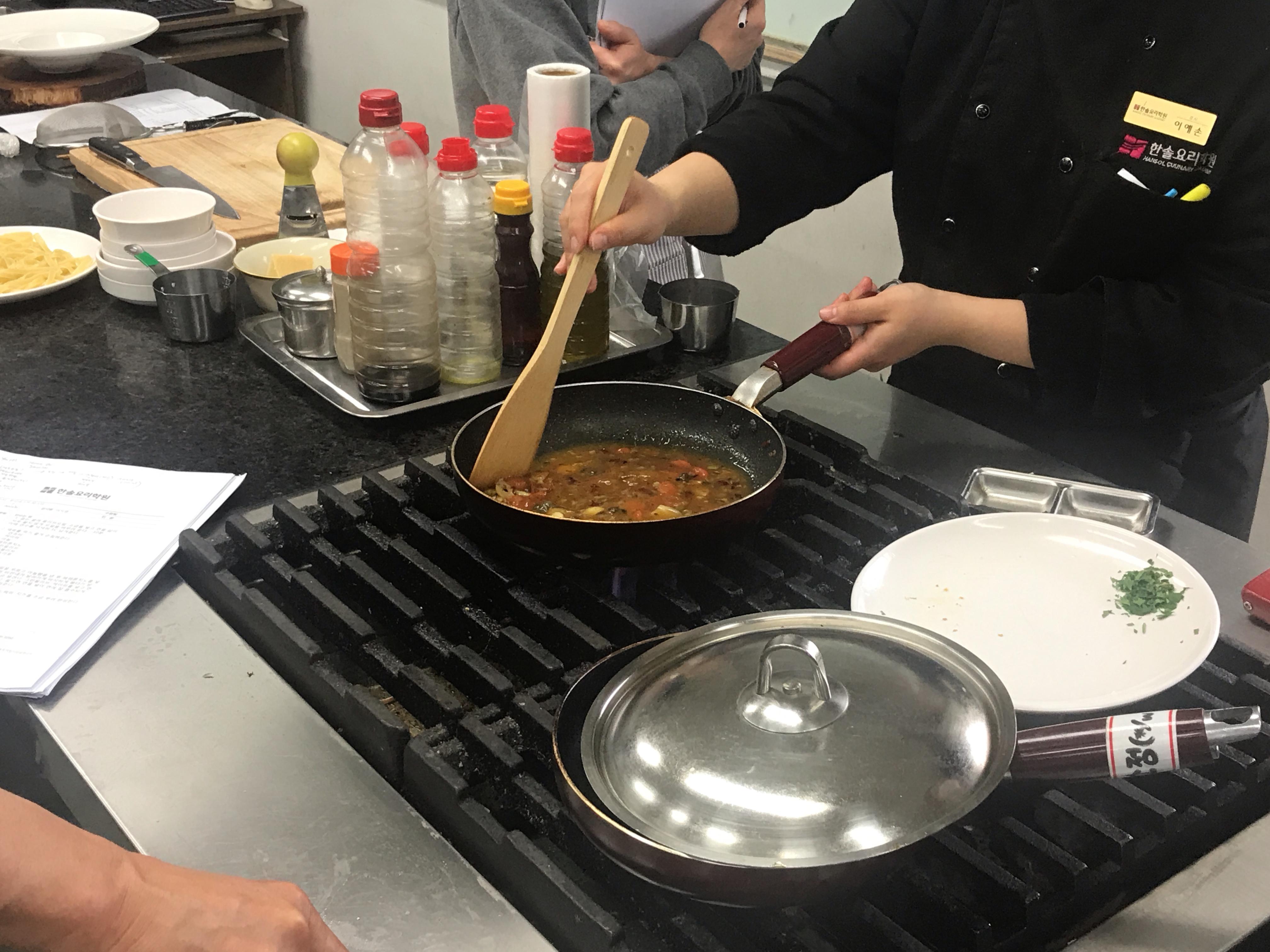 올리브오일에 다진 마늘과 양파를 볶다가