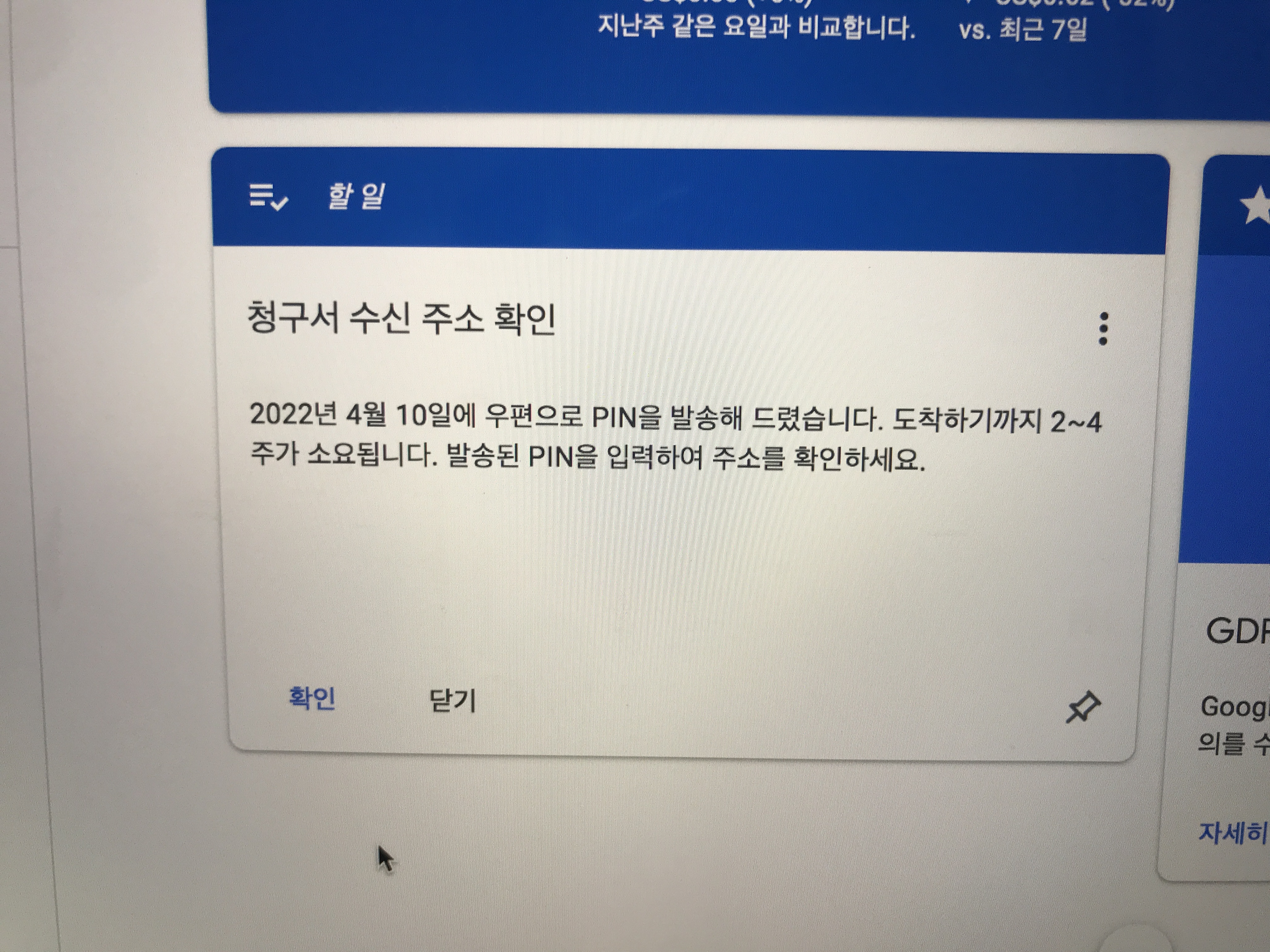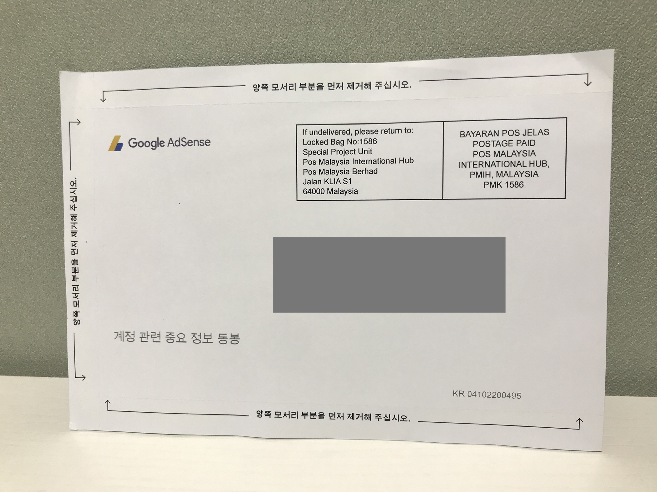 며칠 걸리나 했는데 바로 다음날 우편함에 도착한 구글 애드센스 PIN 봉투 ㅎㅎ