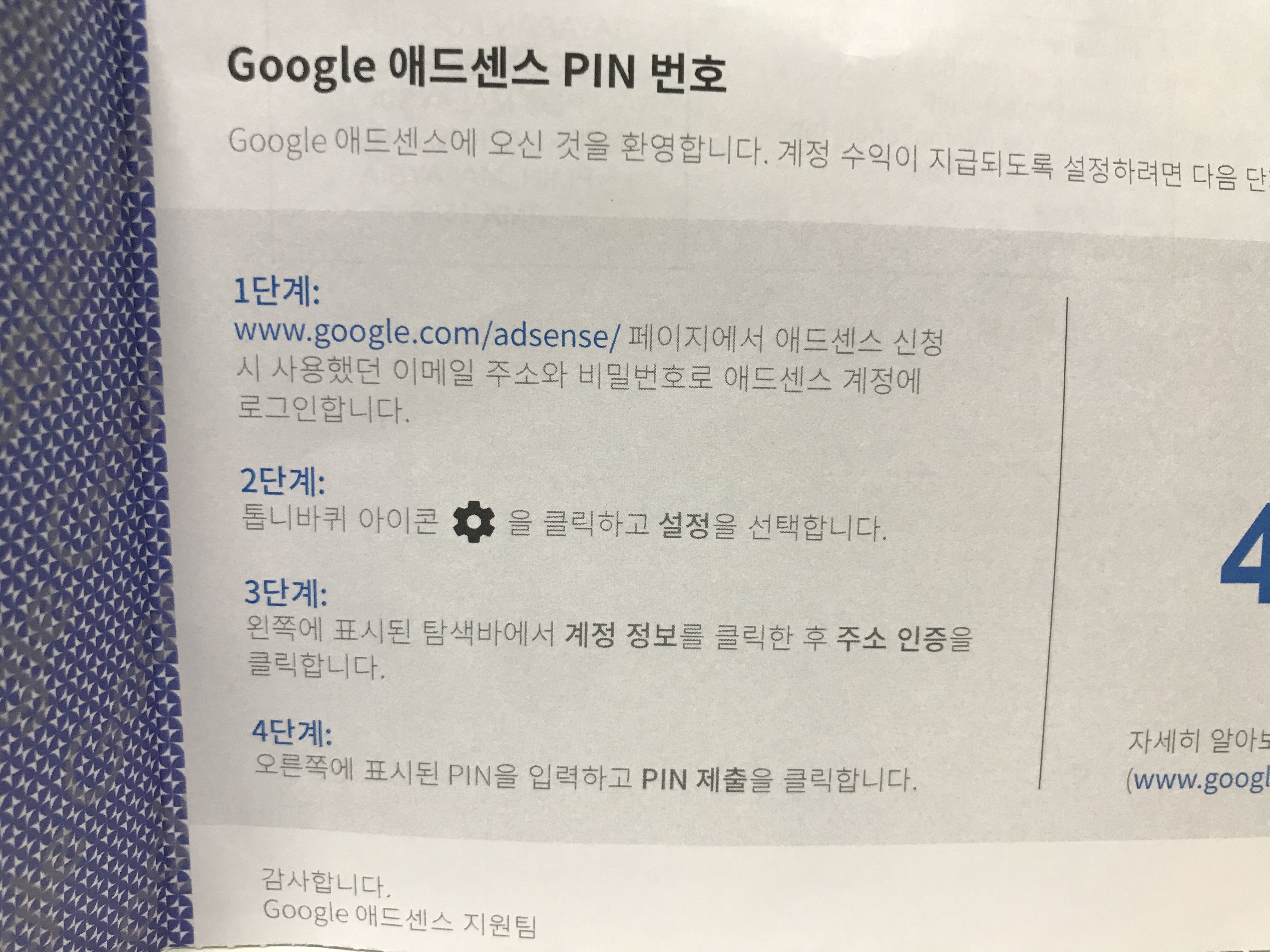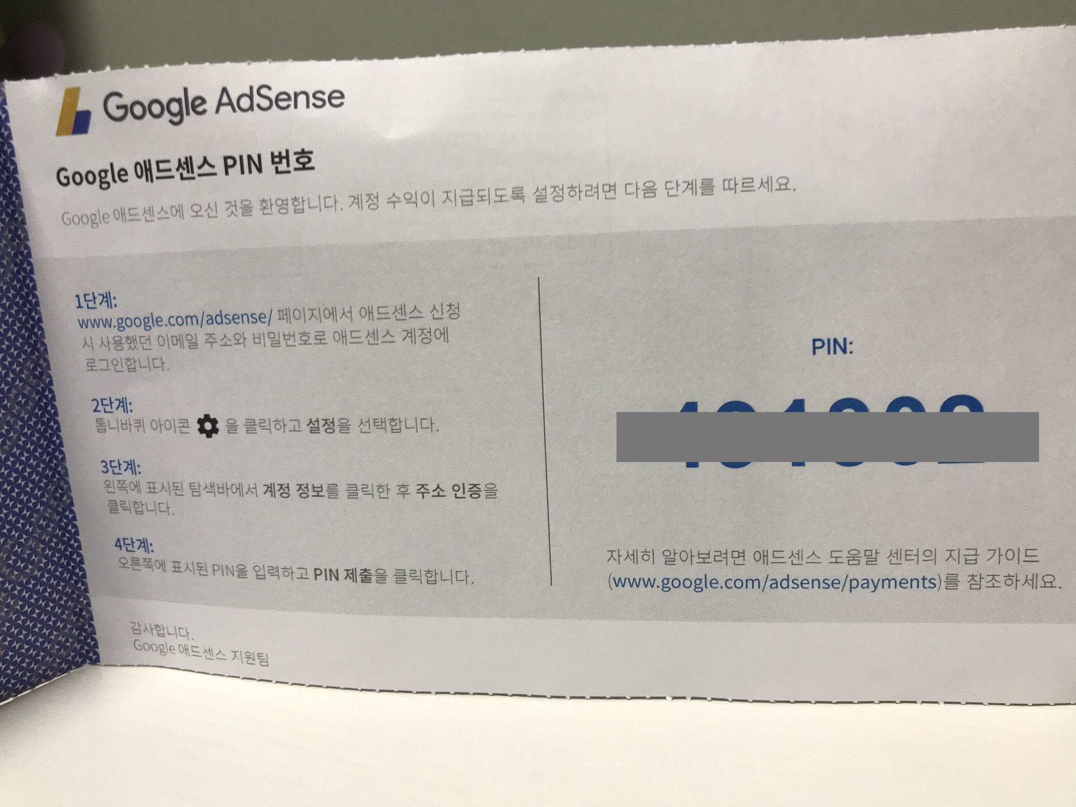 구글 애드센스 핀번호 입력하는 방법도 친절하게 나와있음