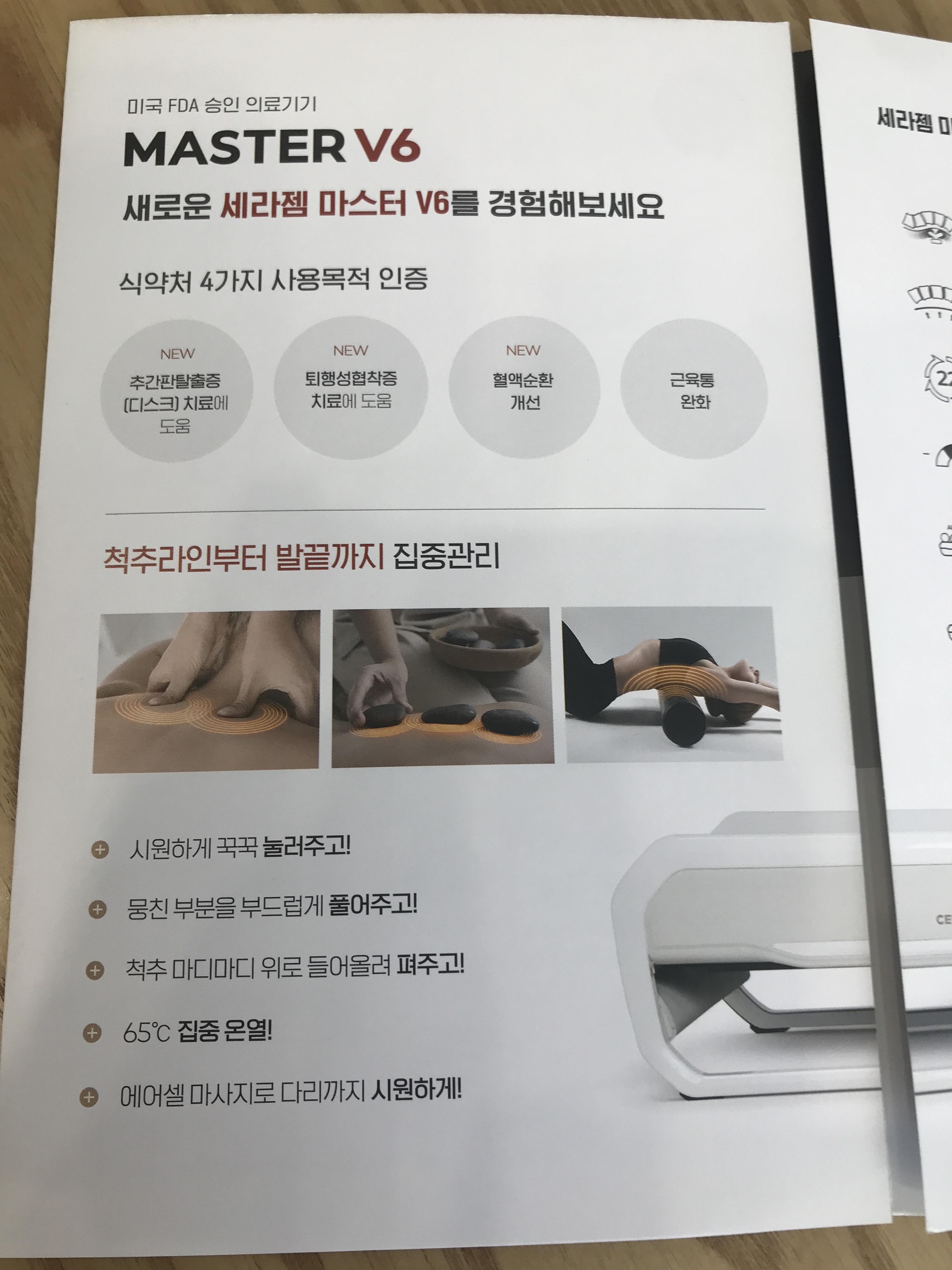 내가 체험한 세라젬 마스터 V6는 디스크 치료에도 도움을 주고 퇴행성협착증 치료에도 도움을 준다고 한다~ 혈액순환 개선과 근육통 완화는 말해모해~ ㅎㅎ