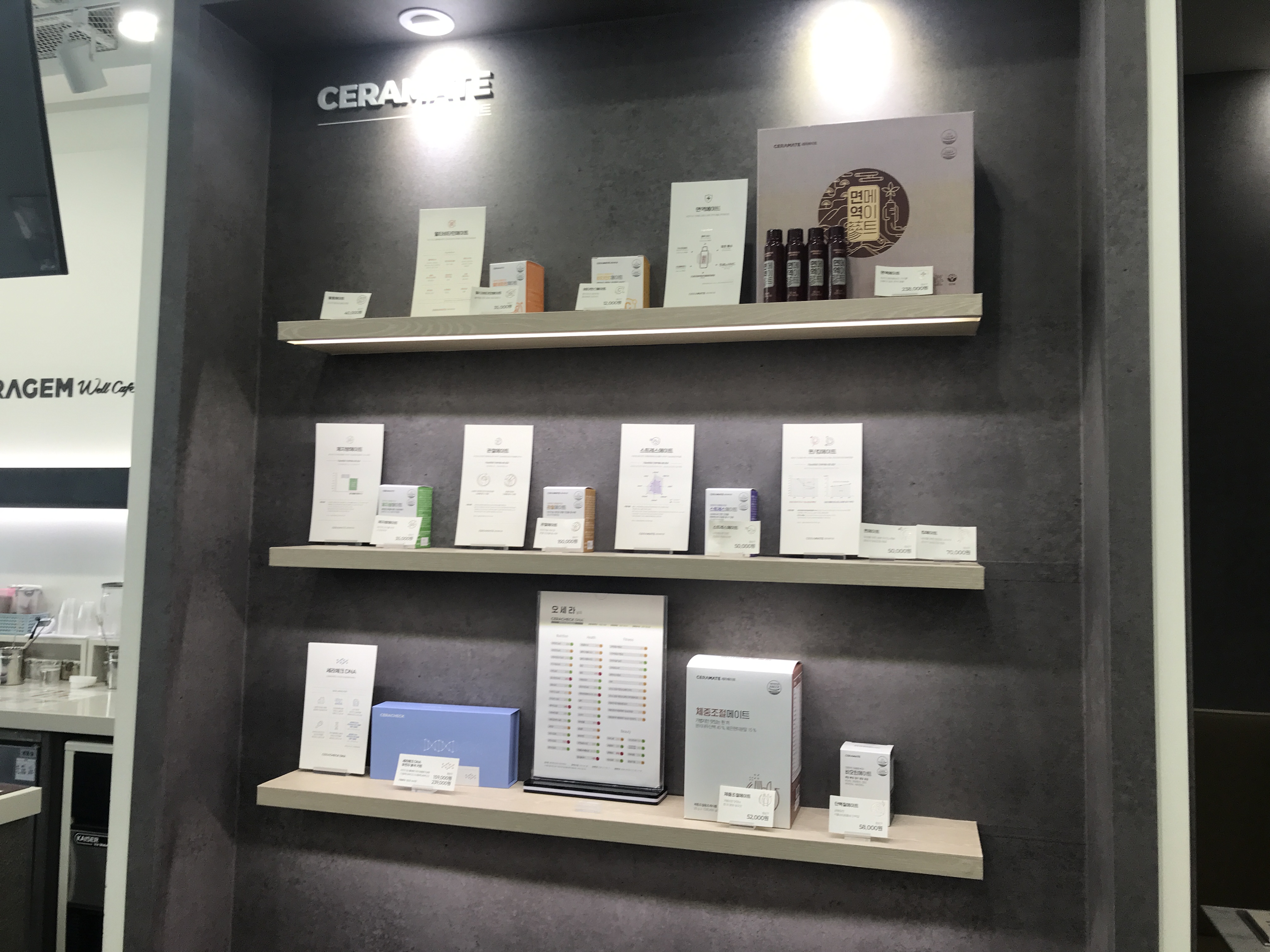 다양한 테스트 및 복용제품도 진열되어 있고