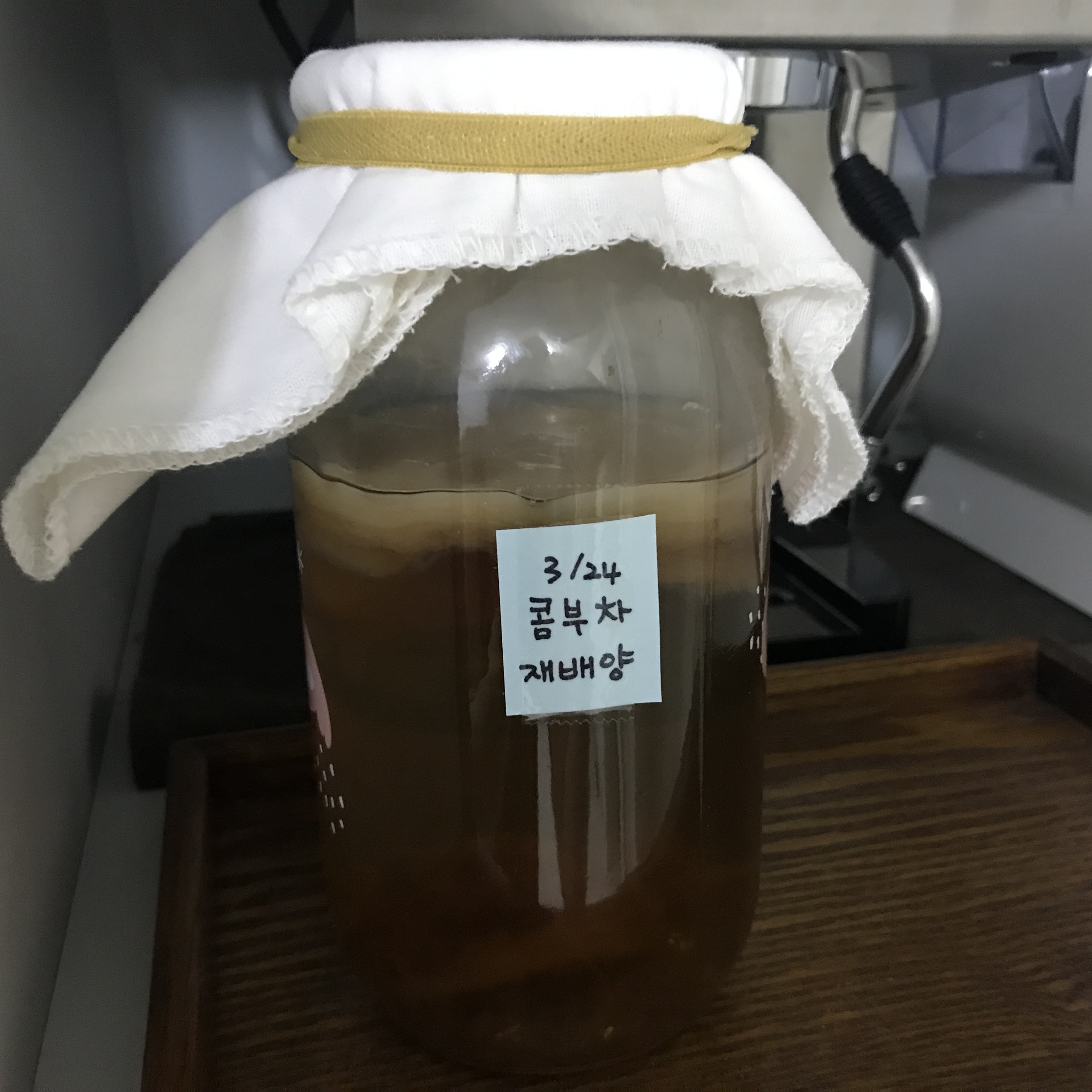 아기 콤부차가 어느새 완전체 성인으로 다 컷다 이제 으른 꼼부차 ㅎㅎ 쿰쿰 시큼한 냄새가 지나갈때마다 코를 자극함 ㅋ