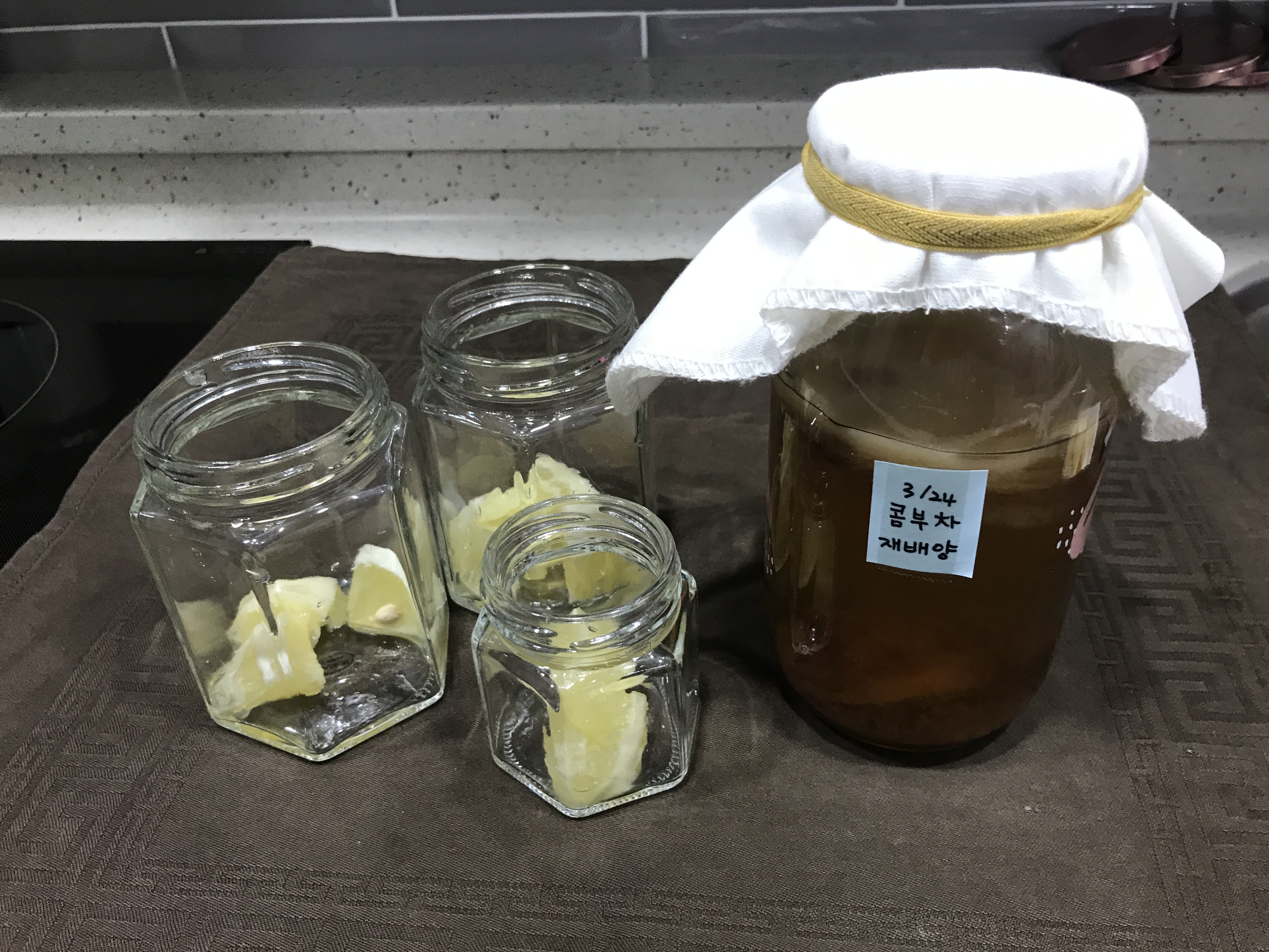 묵히고 묵혀둔 재배양해둔 콤부차도 준비해주고