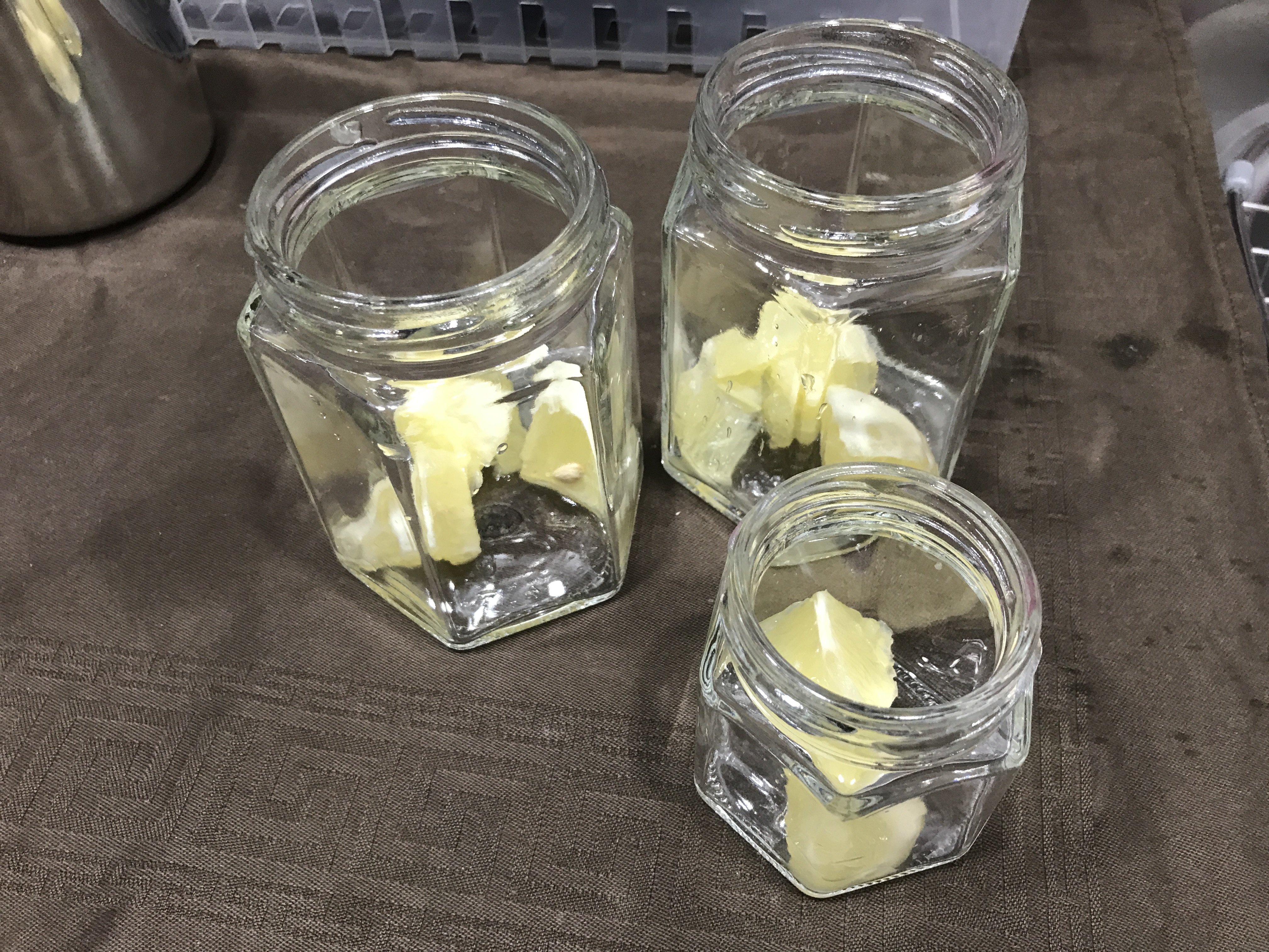재배양한 콤부차는 레몬조각 넣은 공병에 적당히 나눠 부어주고