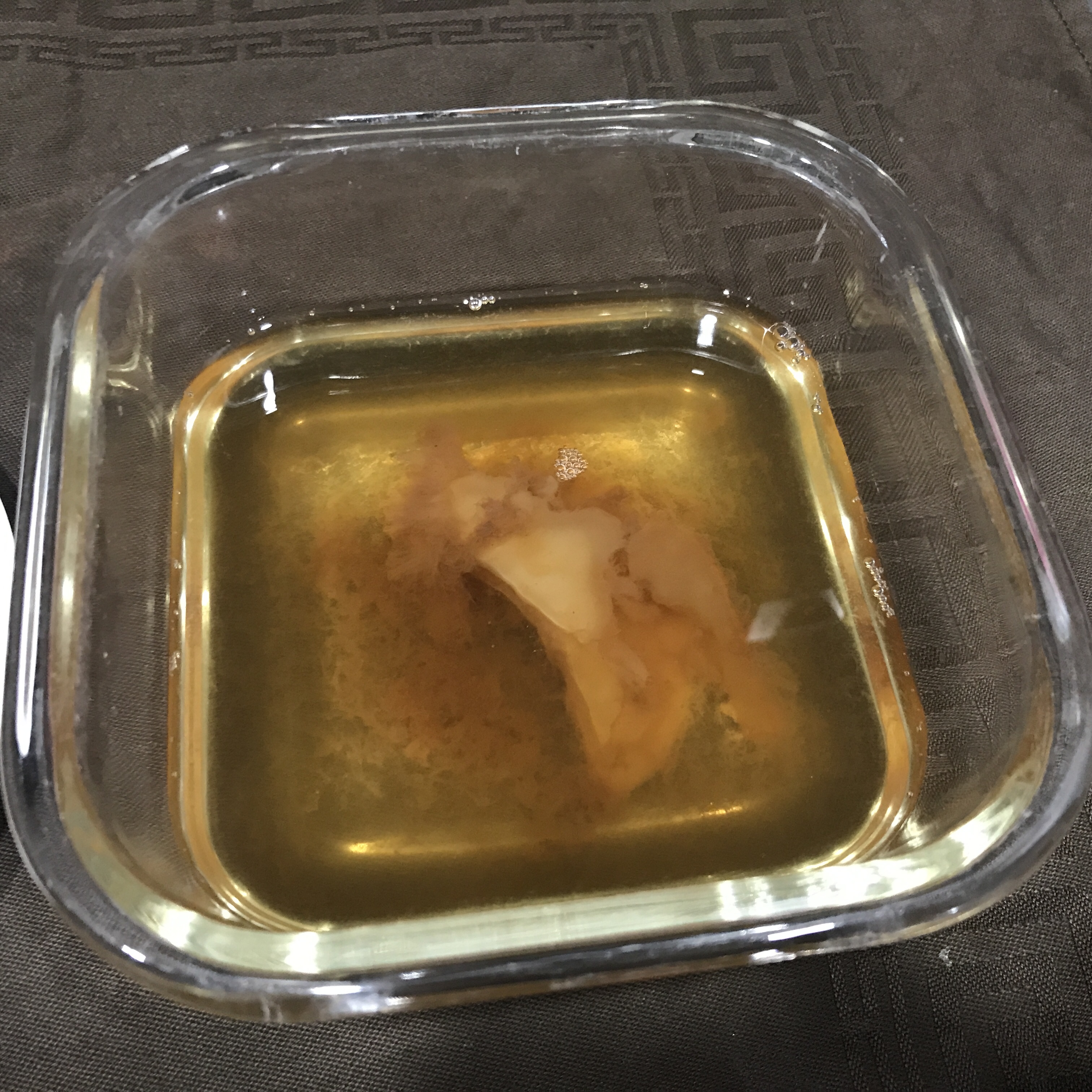 저 거뭇거뭇한거 뭥미.. ㅠ (꺼내봤더니 아기 콤부차일때 내가 집게로 옮기면서 구멍을 내서 ㅠㅠ 그게 종균 살에 구멍을 냈어서 그런듯..)