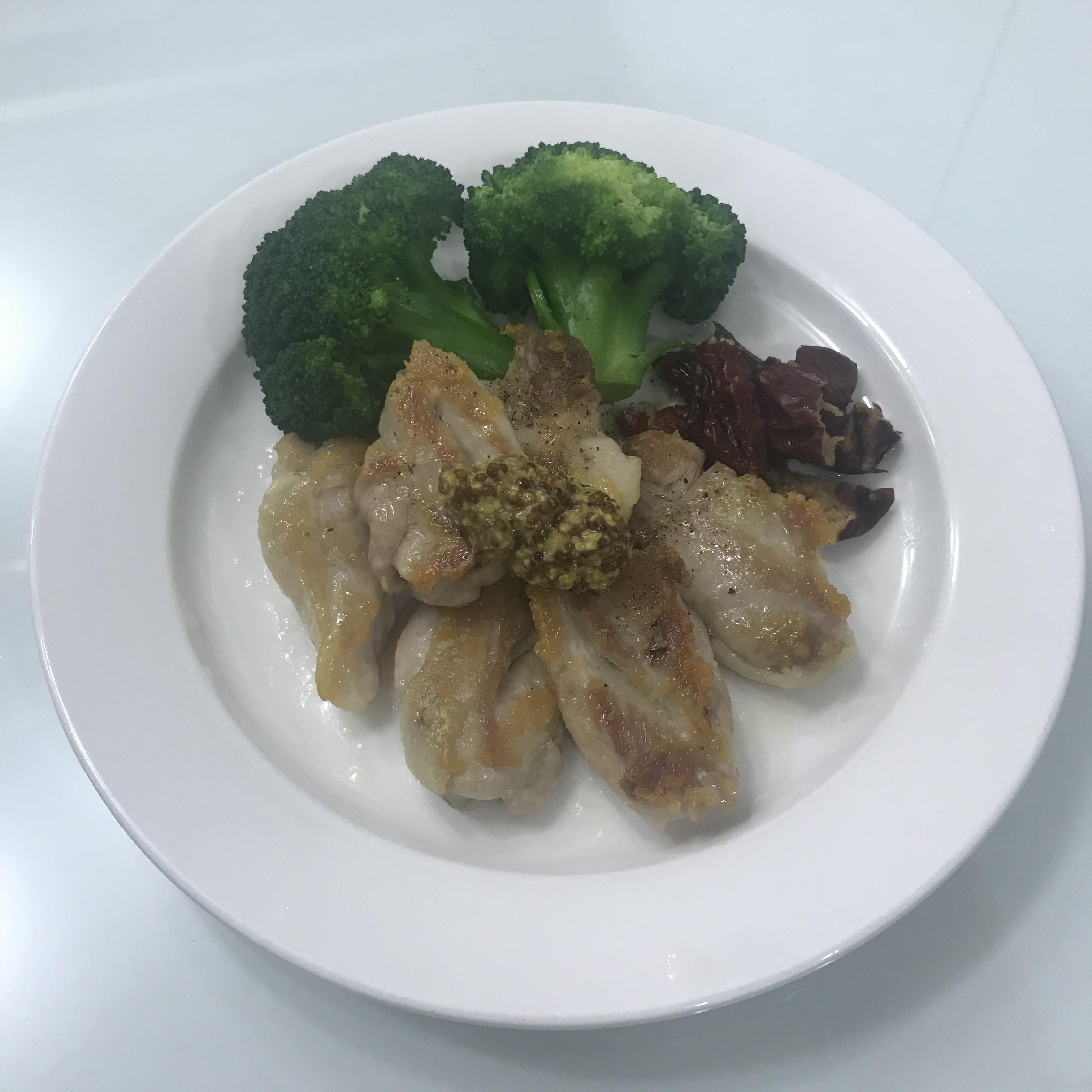 오늘 점심메뉴는 닭다리살 구이와 브로컬리 대추
