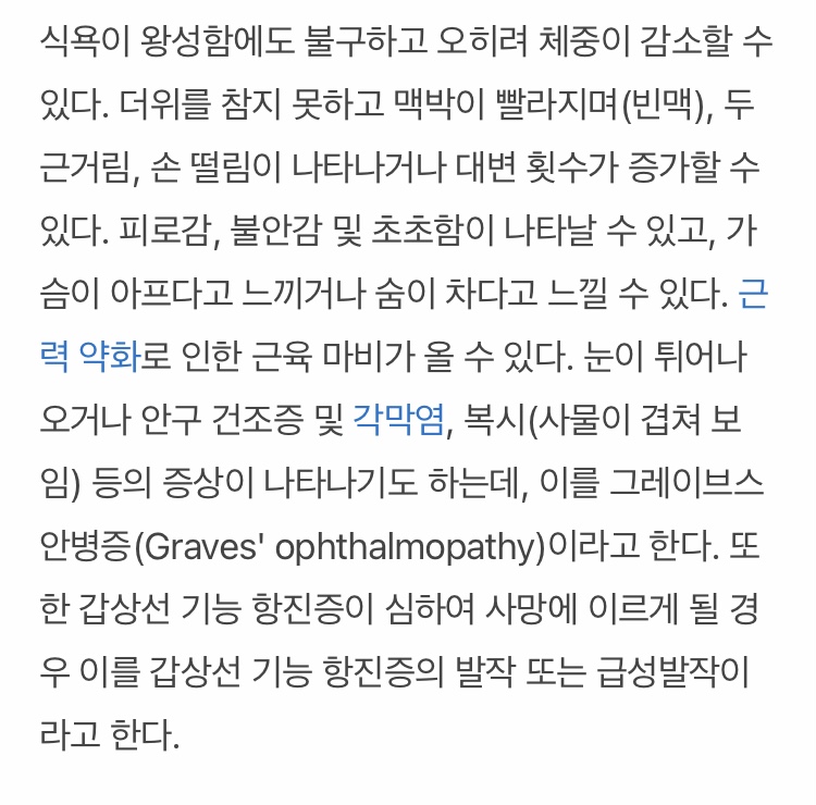 갑상선 항진 증상을 다시 체크하며 정리해보았다