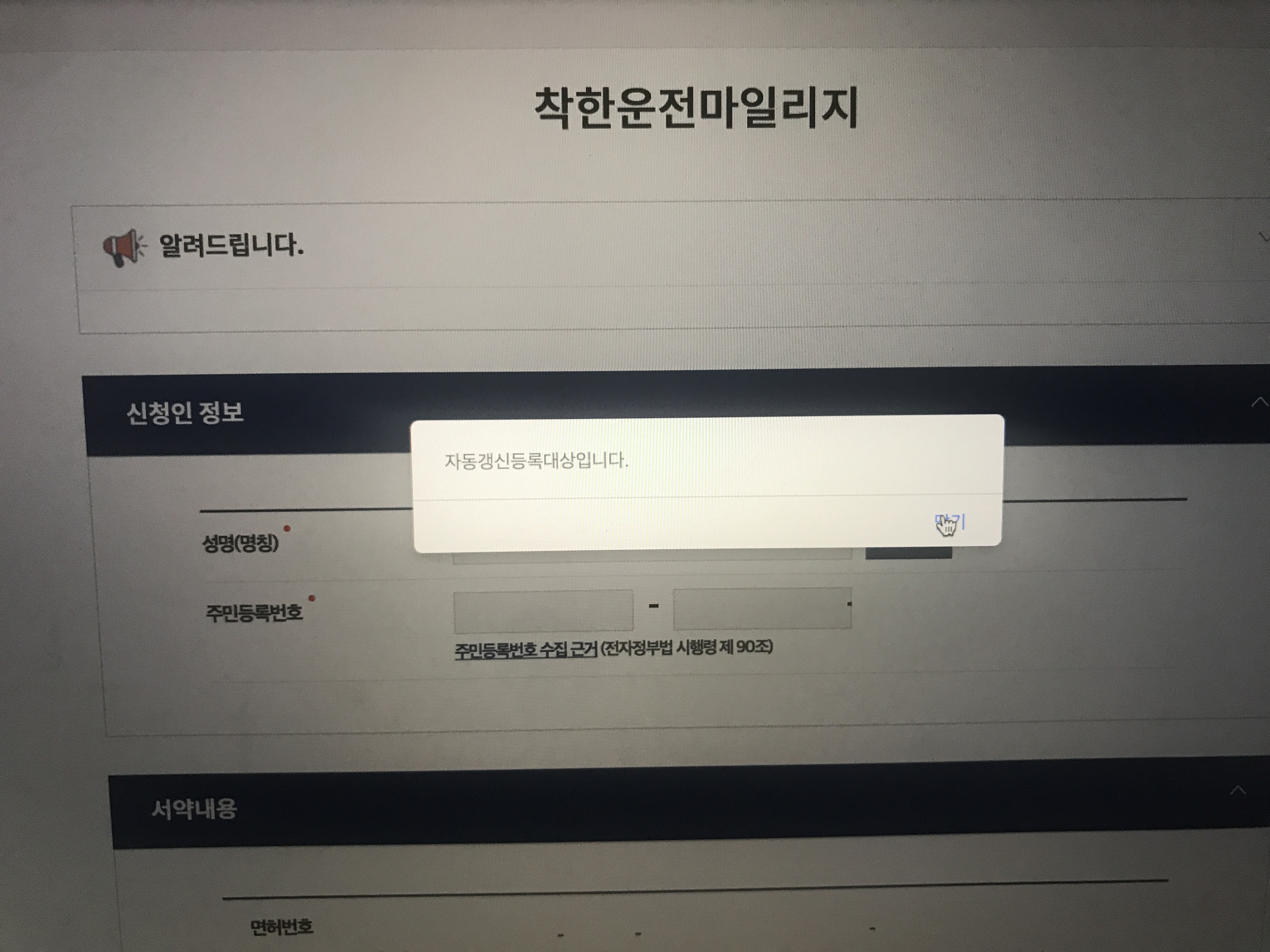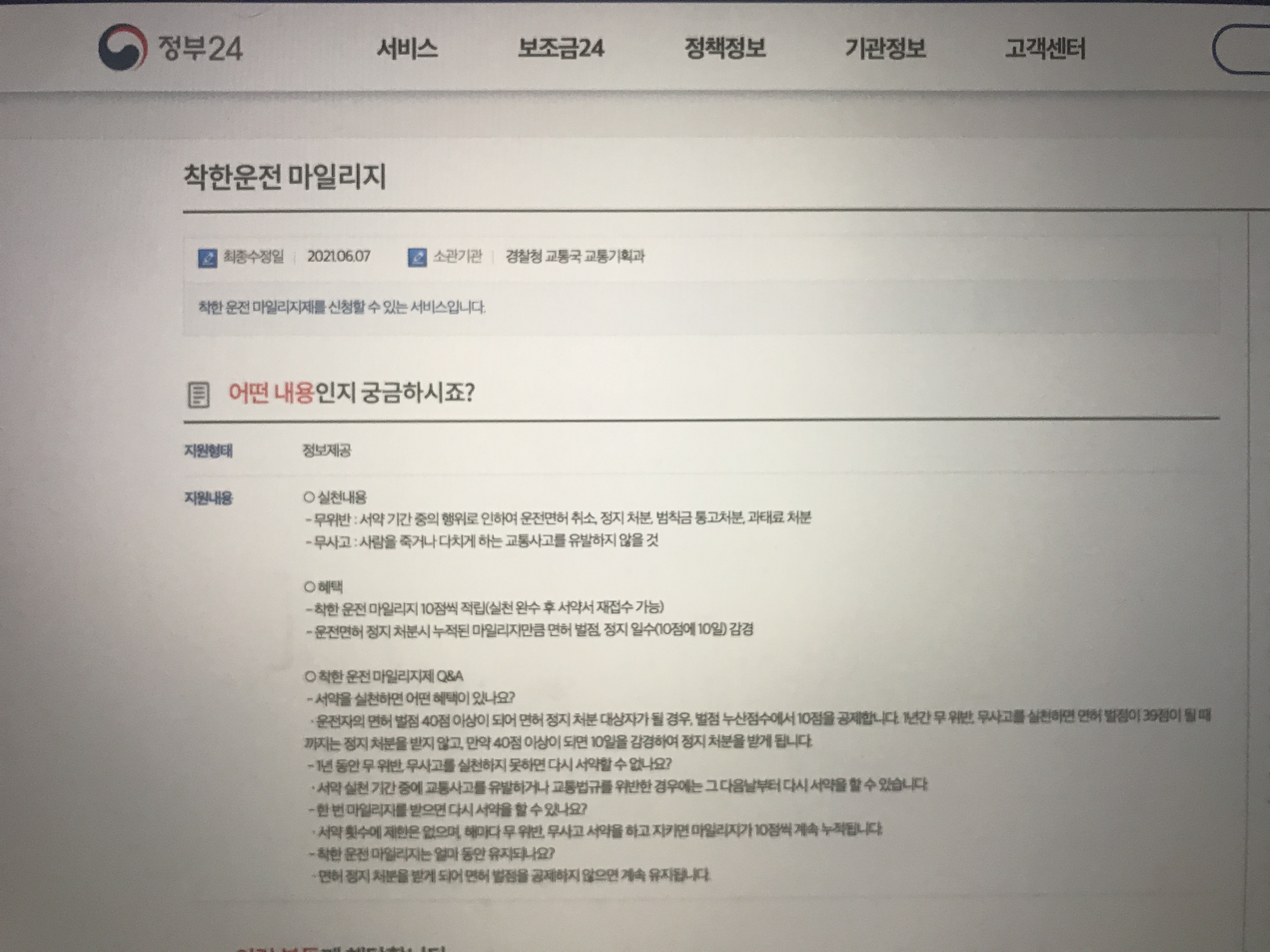 착한운전 마일리지난 운전면허 정지처분 시 면허벌점을 감연받기 위한 무사고,무위반 중수서약 신청 서비스