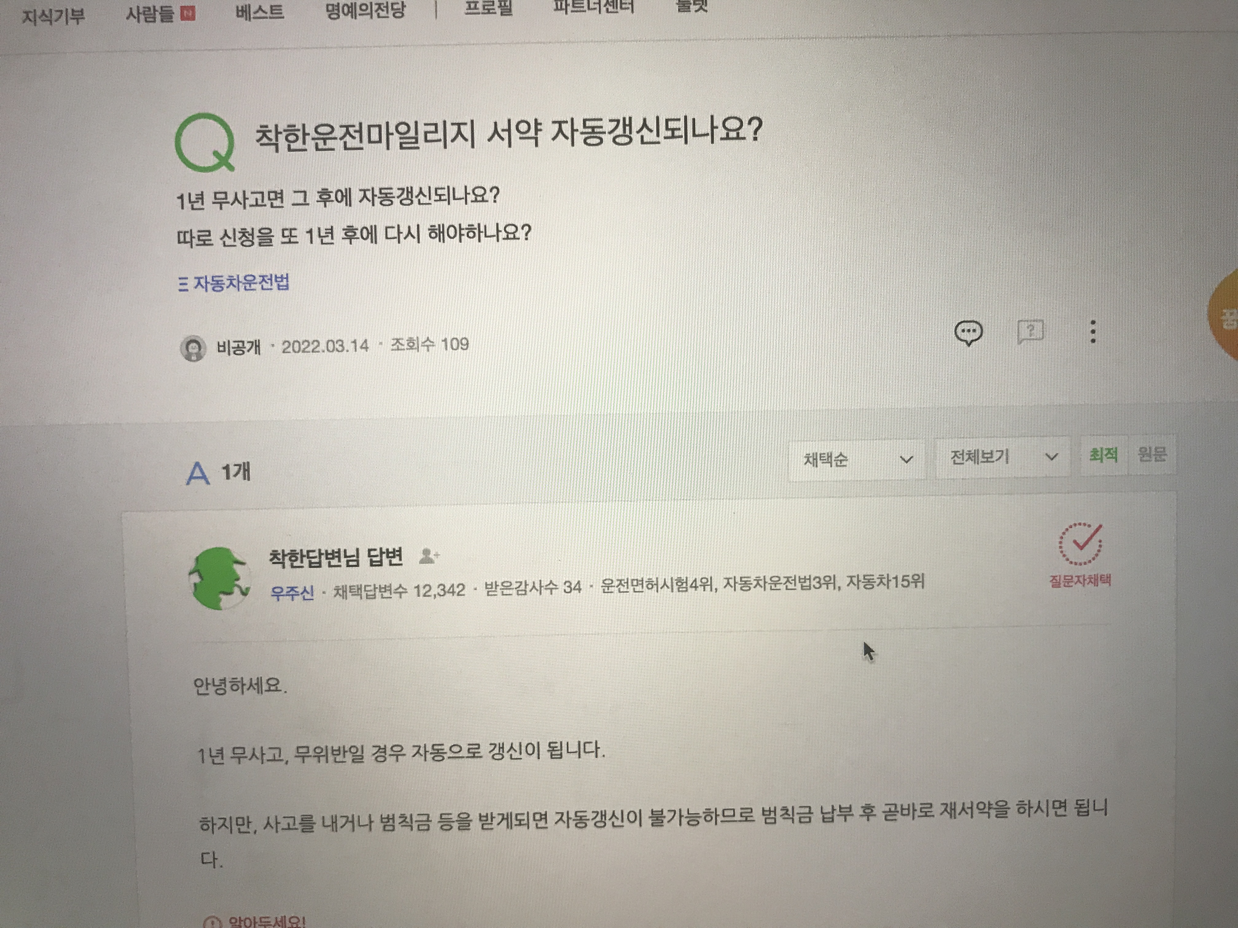 1년 무사고,무위반일 경우 자동으로 갱신된다고 한다