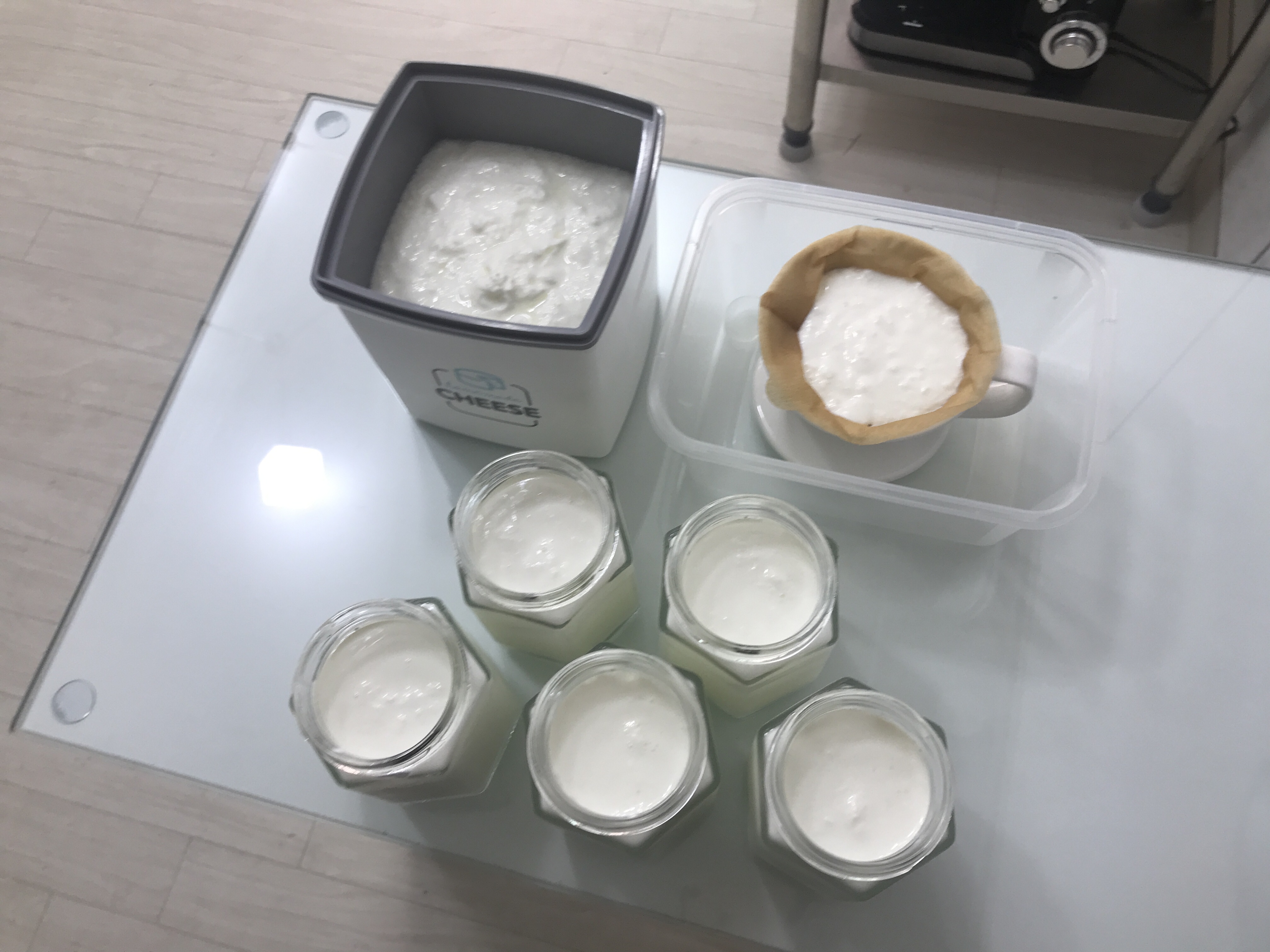 재배양 된 요거트는 유청분리기와 커피필터에