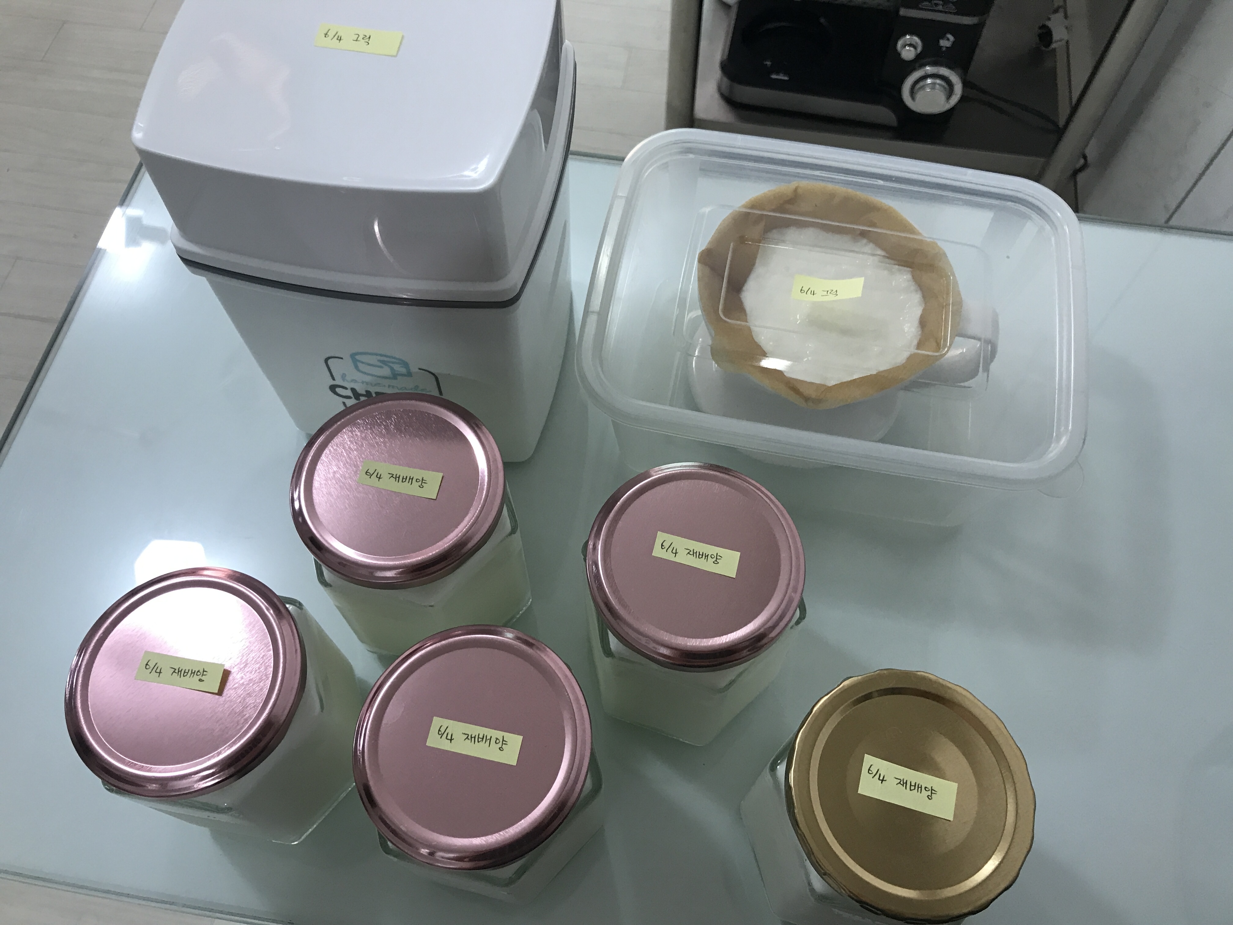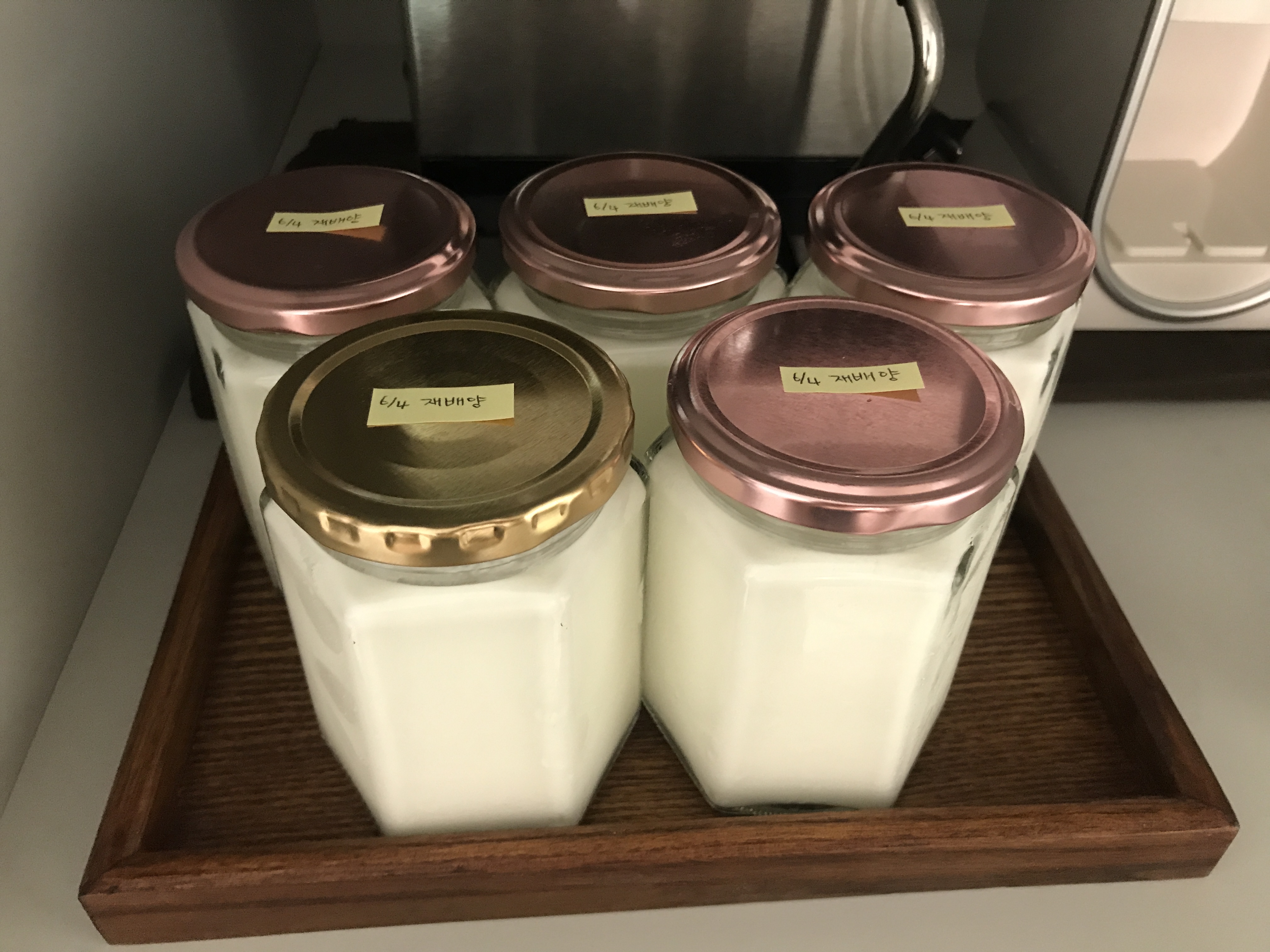 카스피해 종균으로 배양한 요거트 또 재배양하고