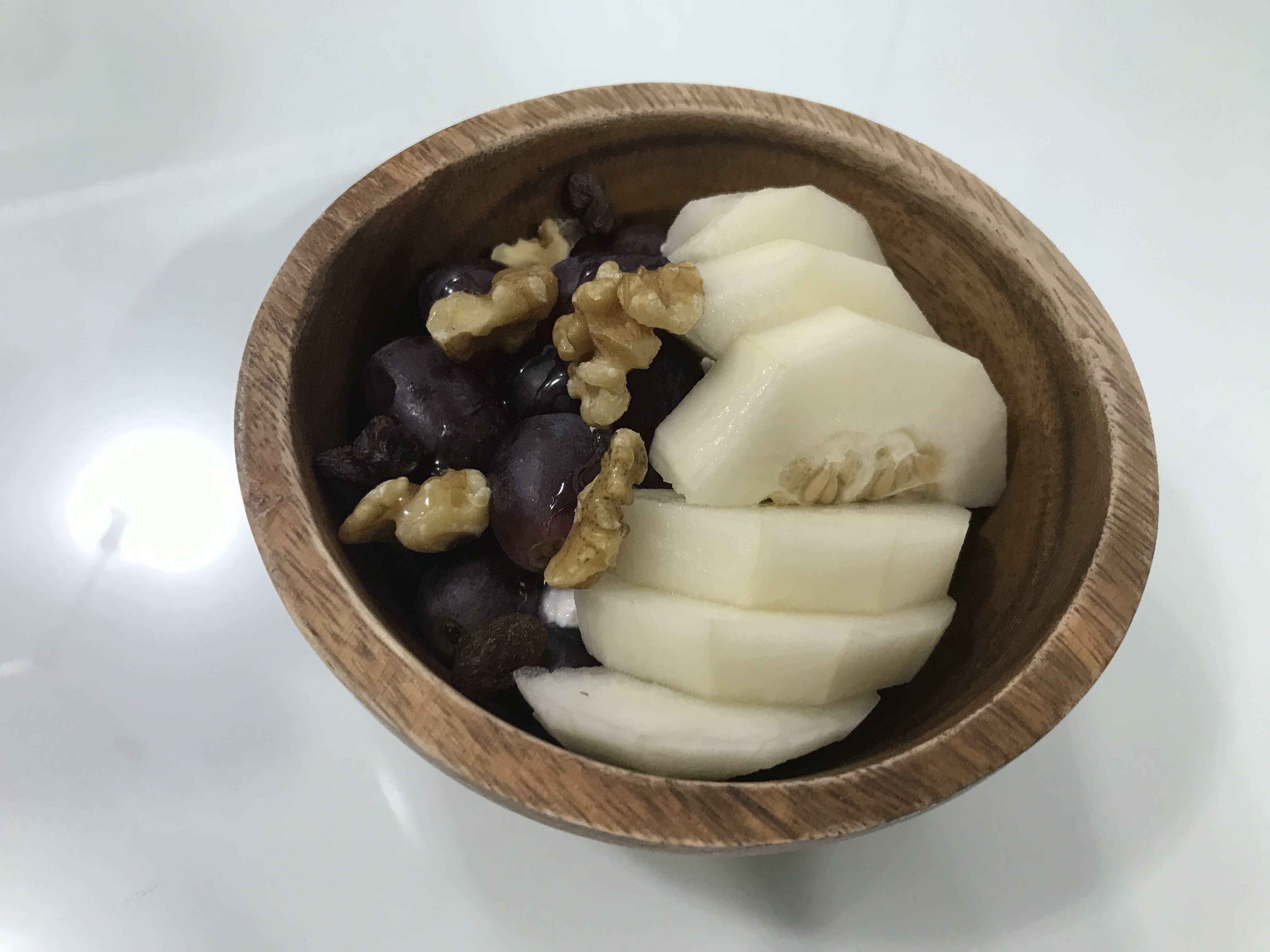 씨없는 크림슨포도와 참외 그리고 호두,건포도,꿀 조합으로 그릭요거트볼을 만들어보았다