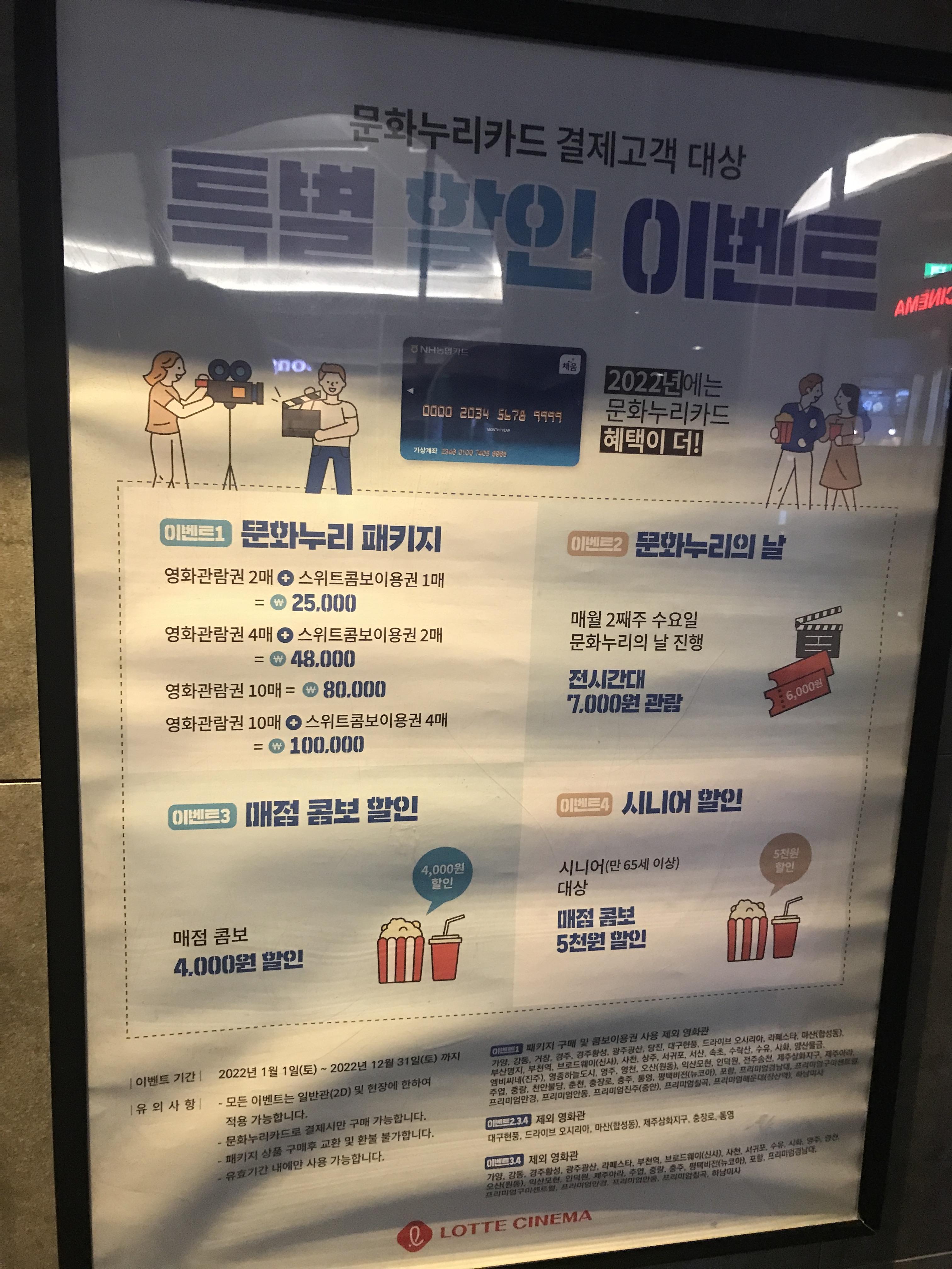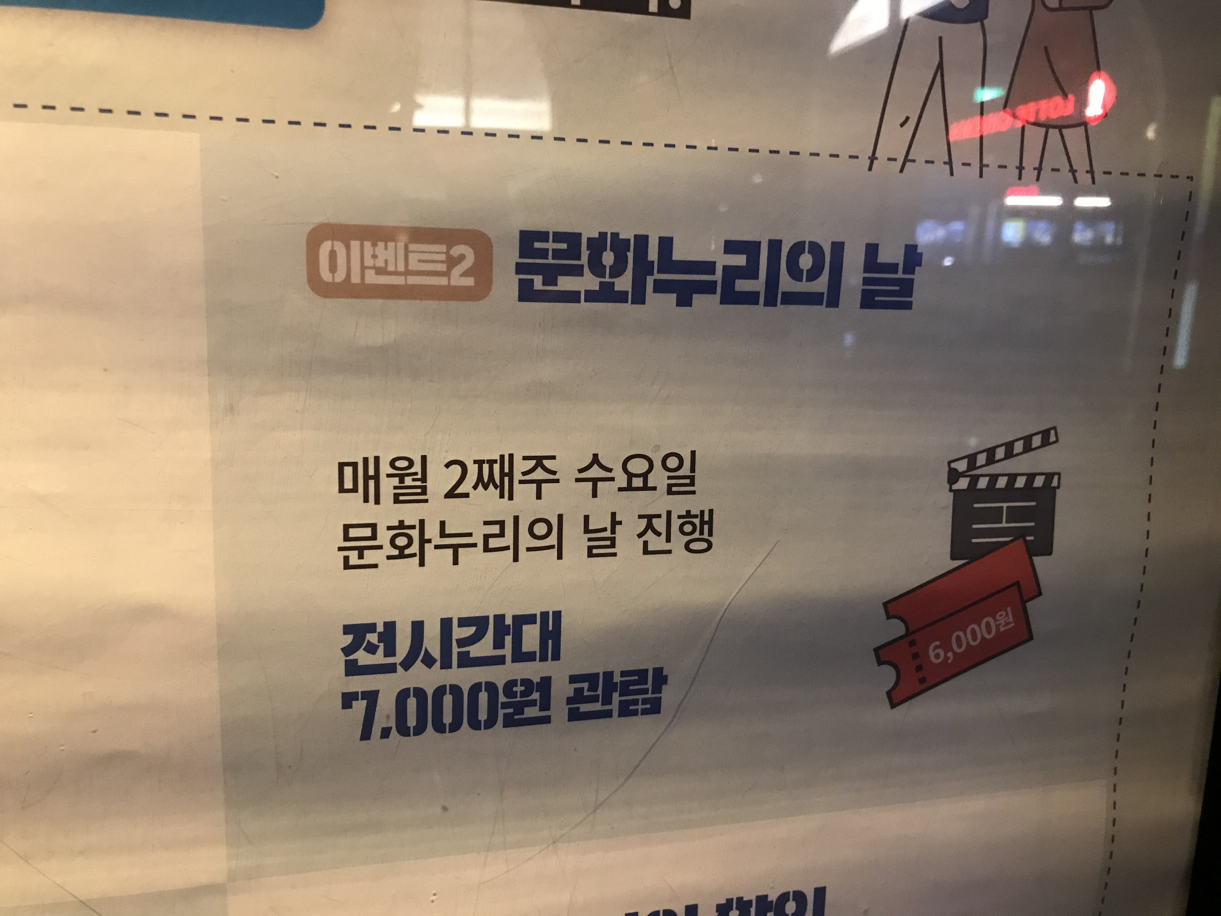 매월 둘째주 수요일은 전시간대 7000원 관람 :) 꿀!