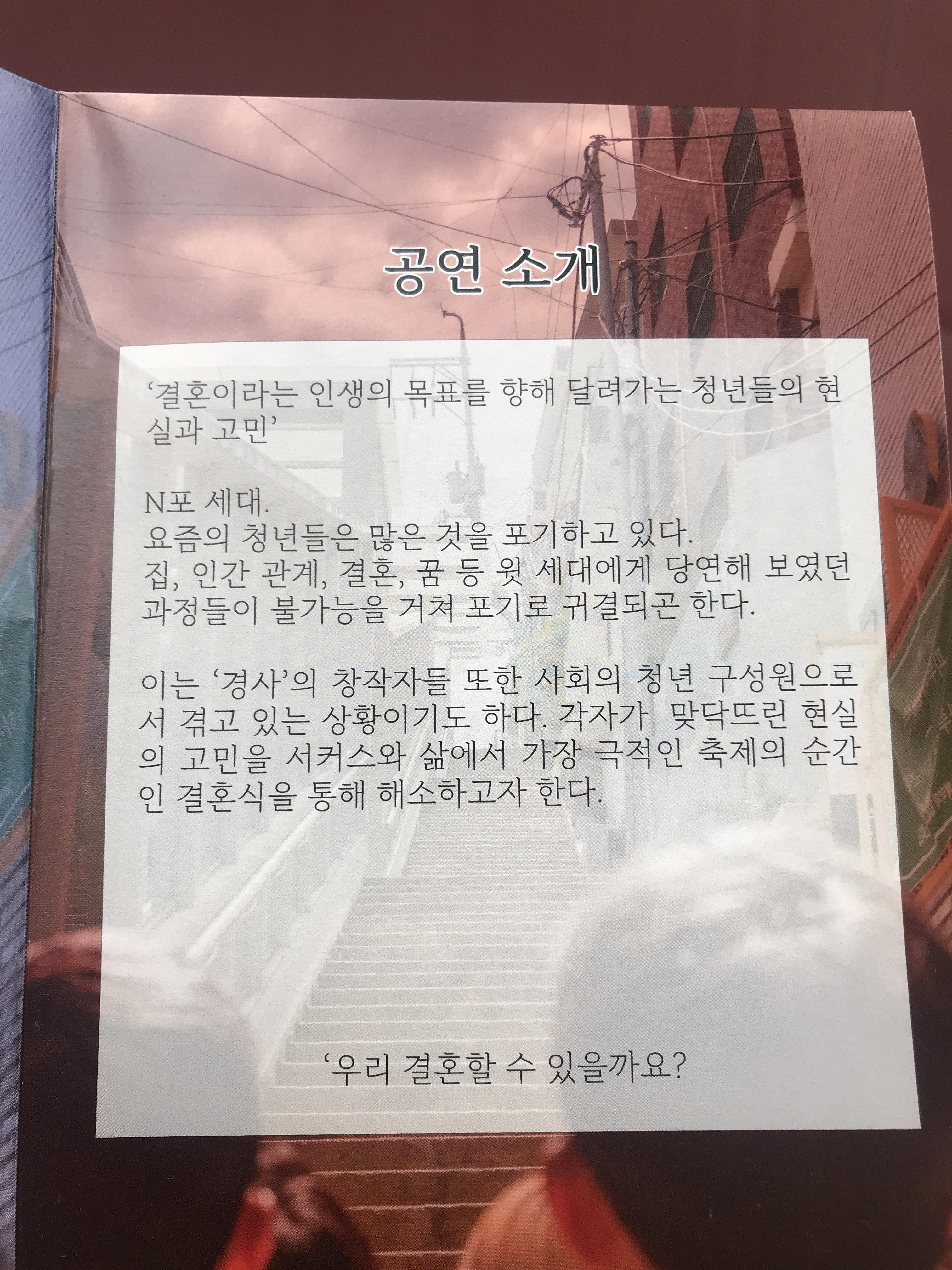 결혼,집,인간관계,꿈 .. 많은 것을 포기하는 요즘 세대 청년들의 현실과 고민을 힙하게 표현한 최고의 공연이였다 :)