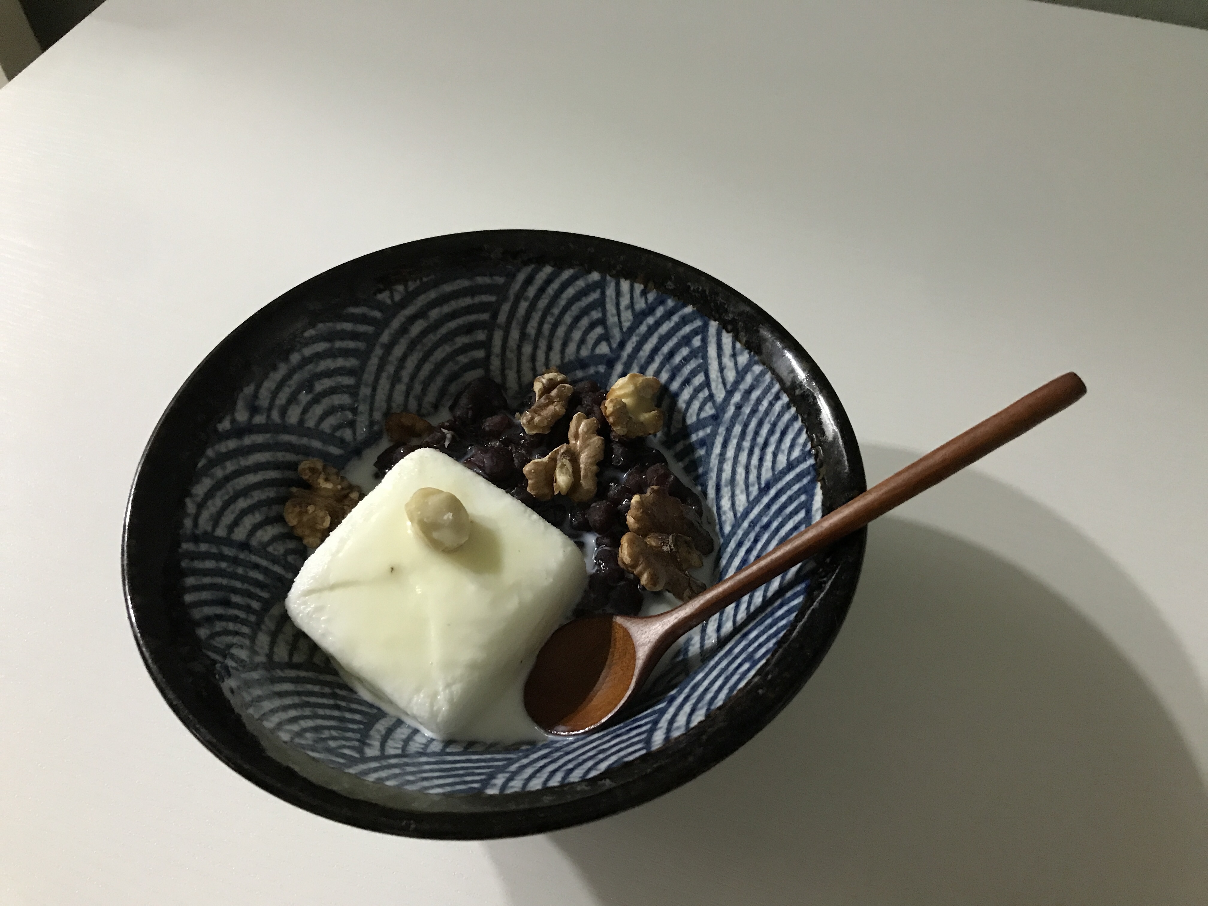우유를 얼려두고 통팥을 쑤고 호두를 굽더니