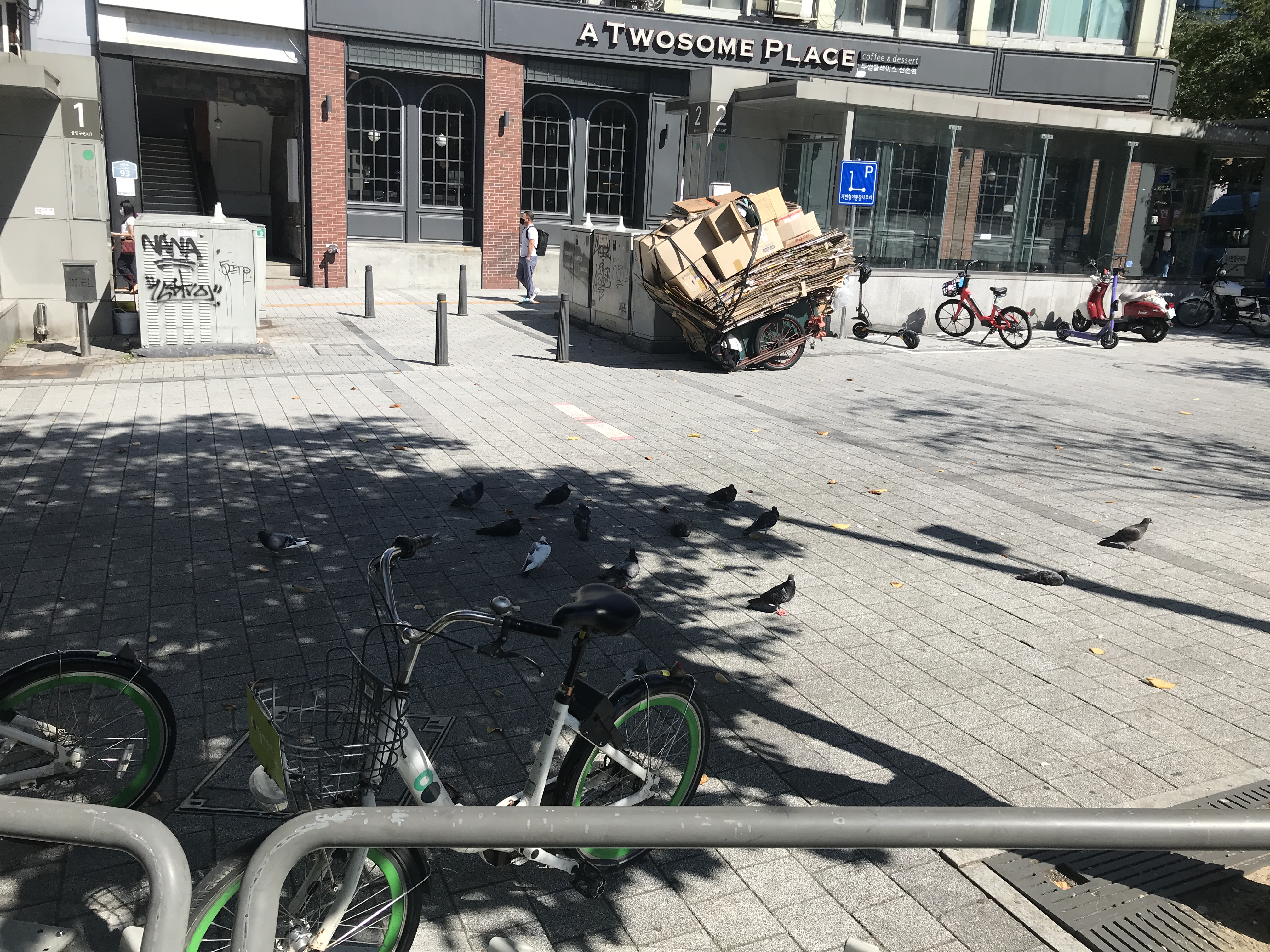비둘기들이 나무 그늘 아래에만 옹기종이 모여있는게 신기해서 또 찰칵 ㅎㅎ