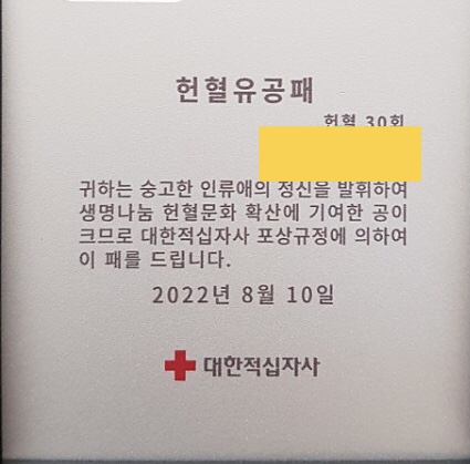 헌혈유공패를 받은걸 보고 관심이 생겨 찾아보니