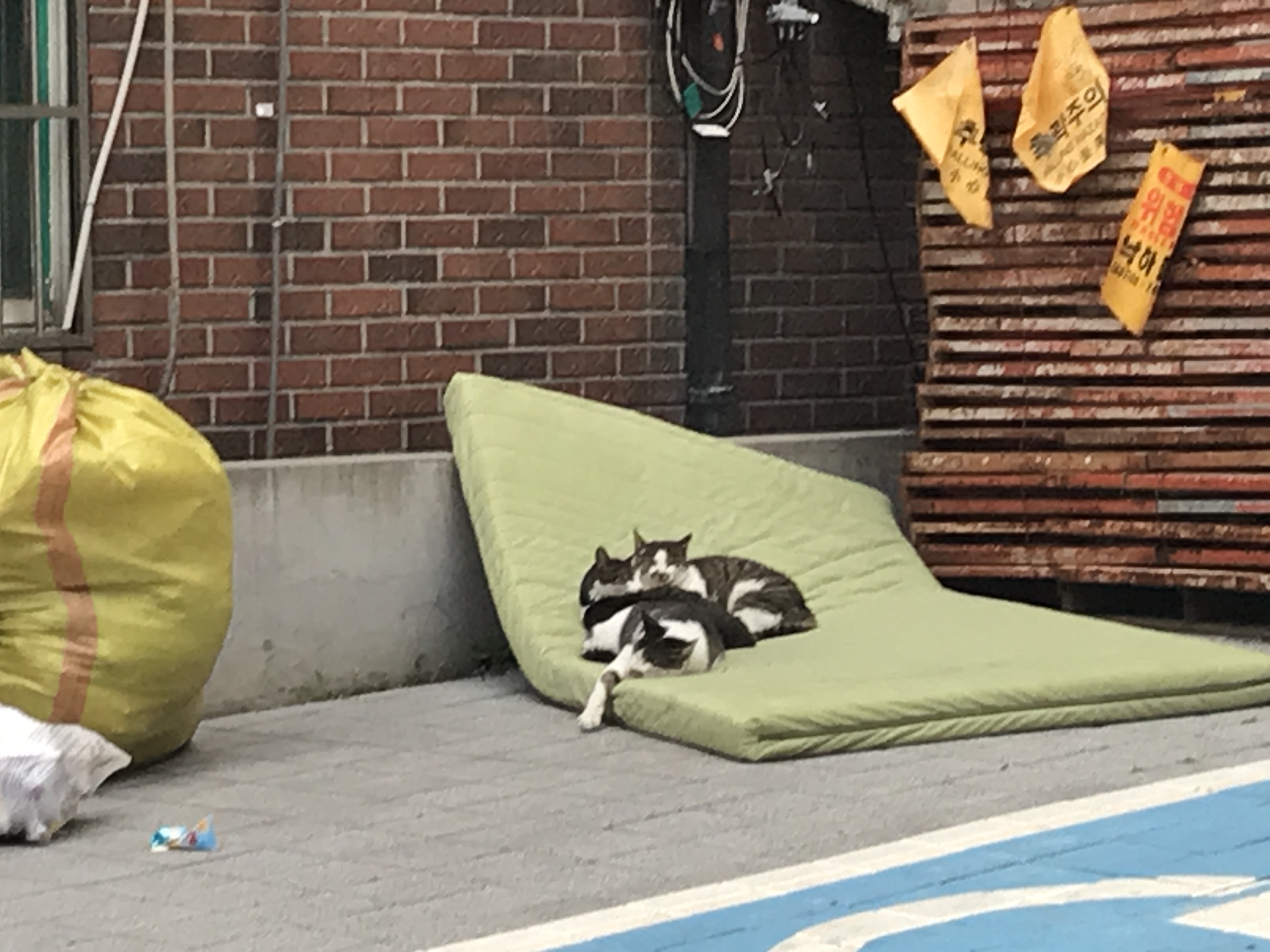 고양이 가족은 카톡도 티스토리도 냉장고 고민도 없겠지 ㅎㅎ 지나가다 너무 귀여워서 찰칵