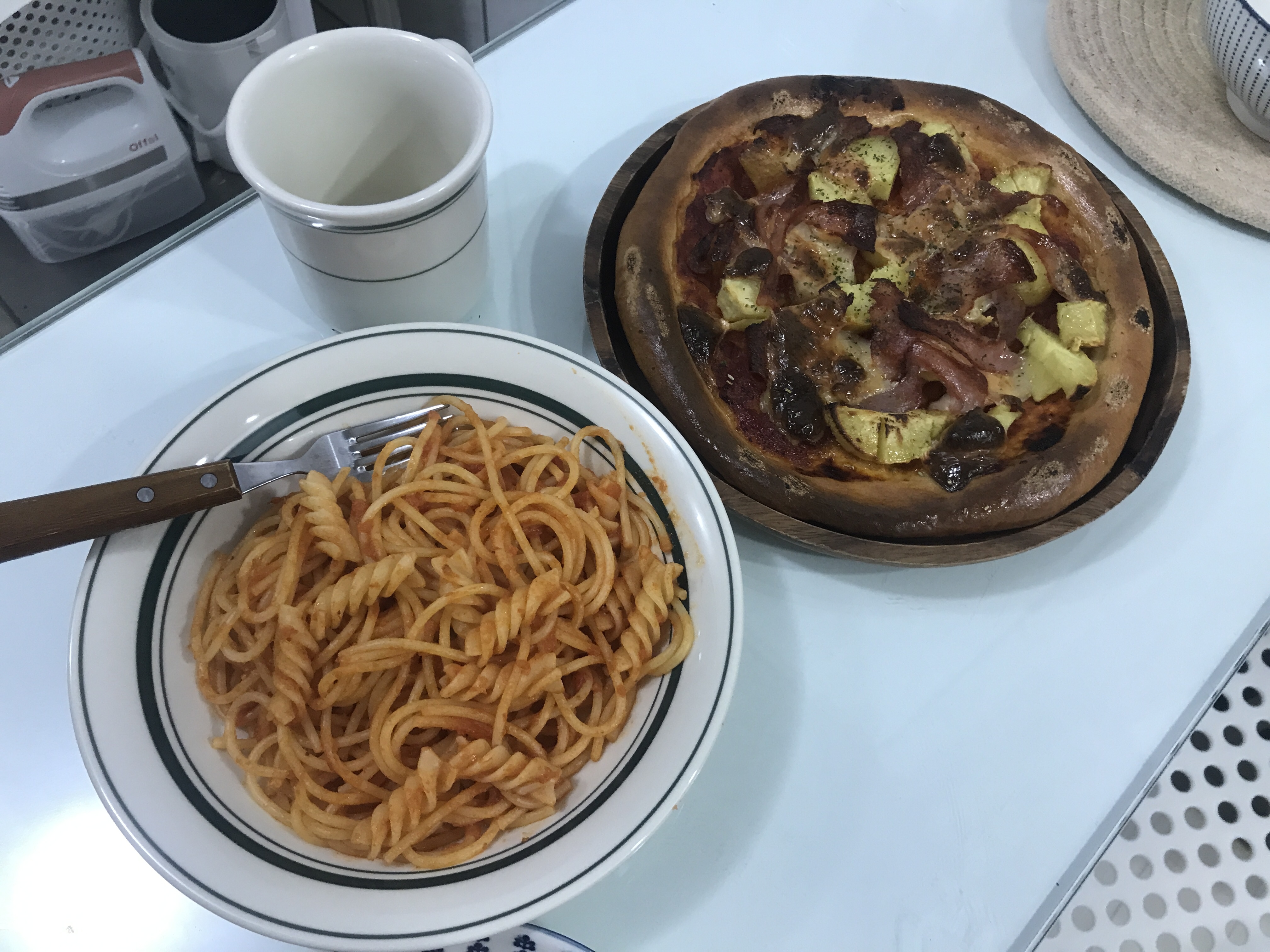 새로 산 스파게티 소스로 스파게티 푸실리 파스타도 함께