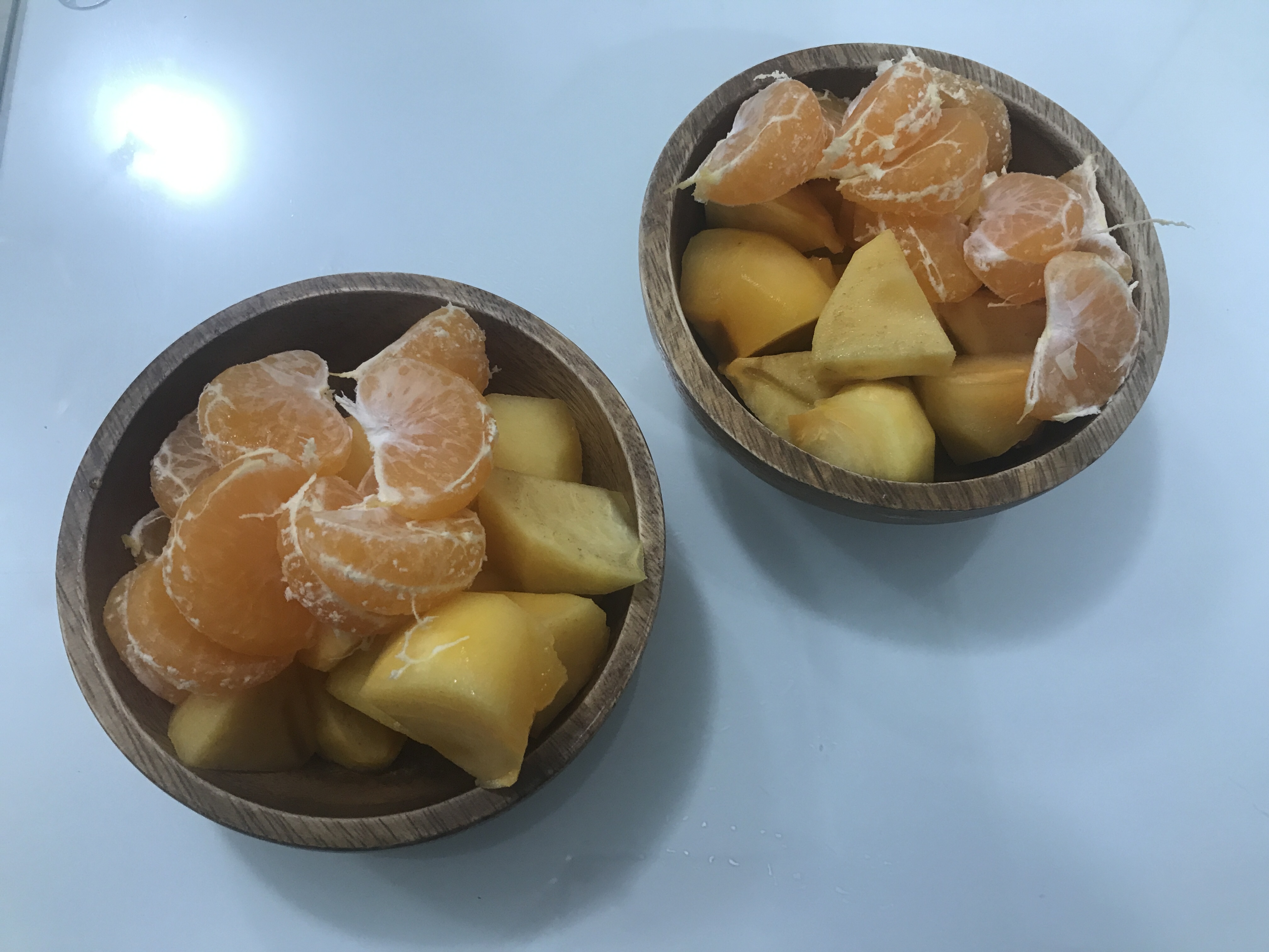 달달하게 잘 익은 감과 기다기고 기다리던 귤