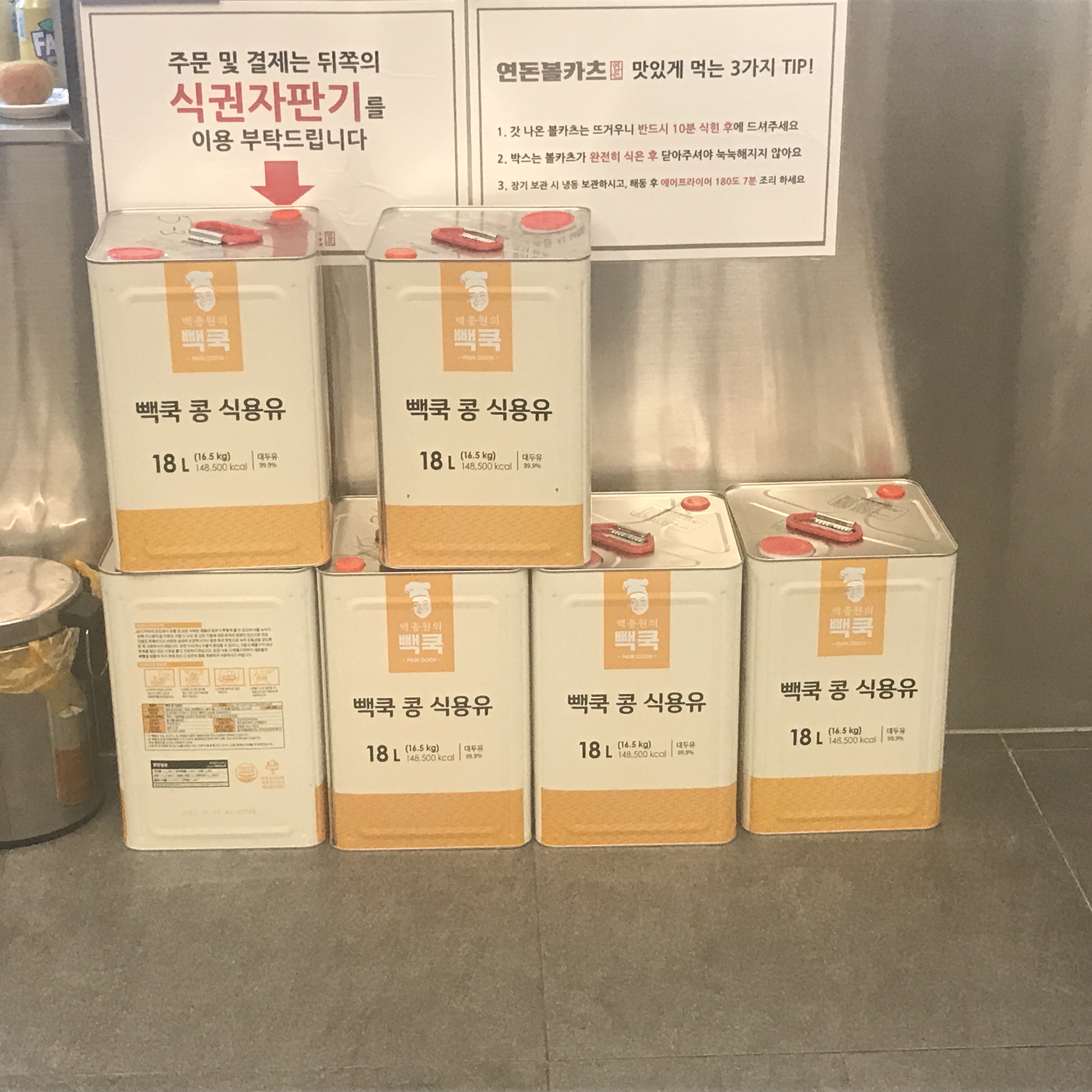 기름통도 자체적으로 자사에서 라벨링한 기름 사용