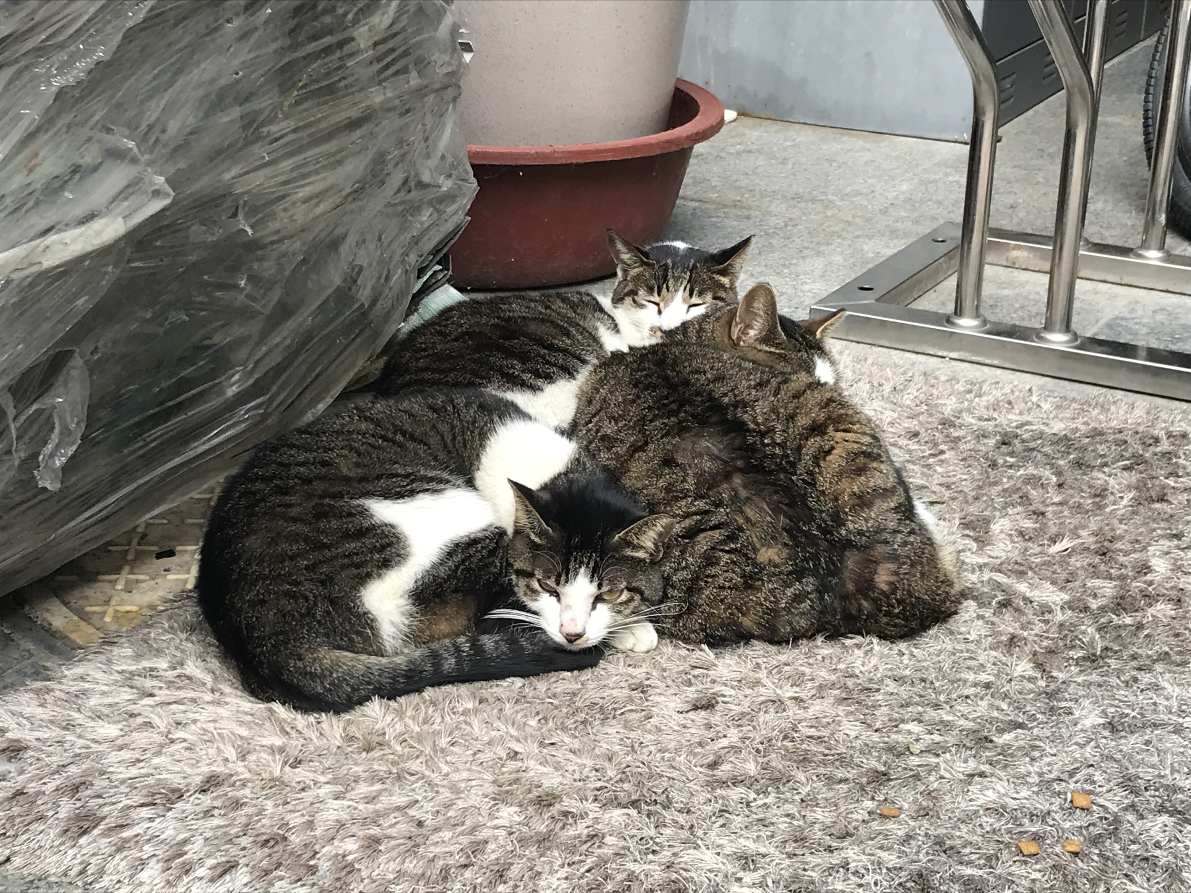 쌀쌀해진 날씨에 옹기종기 모여 낮잠을 즐기는 길냥이 가족들