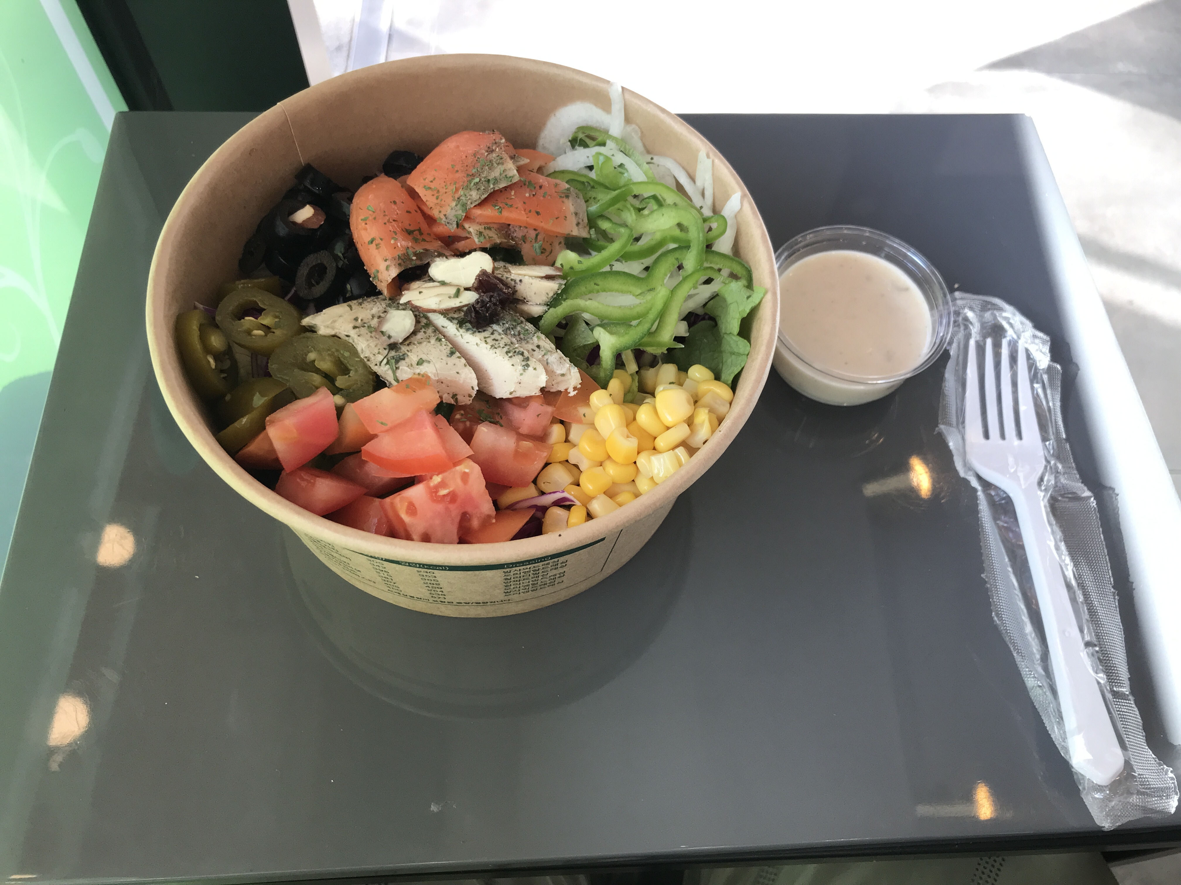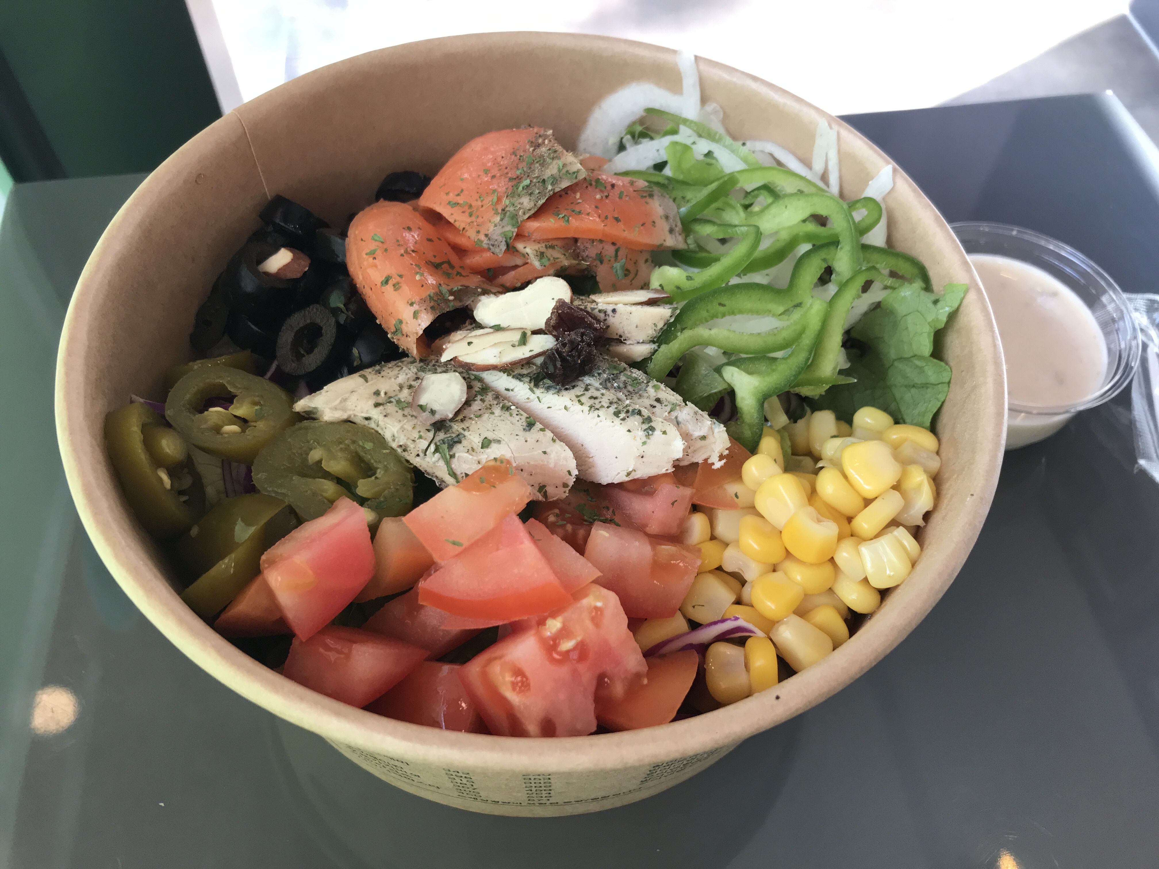 운동하고 달커 연어샐러드에 로스트치킨 추가해서 먹기 뇸뇸