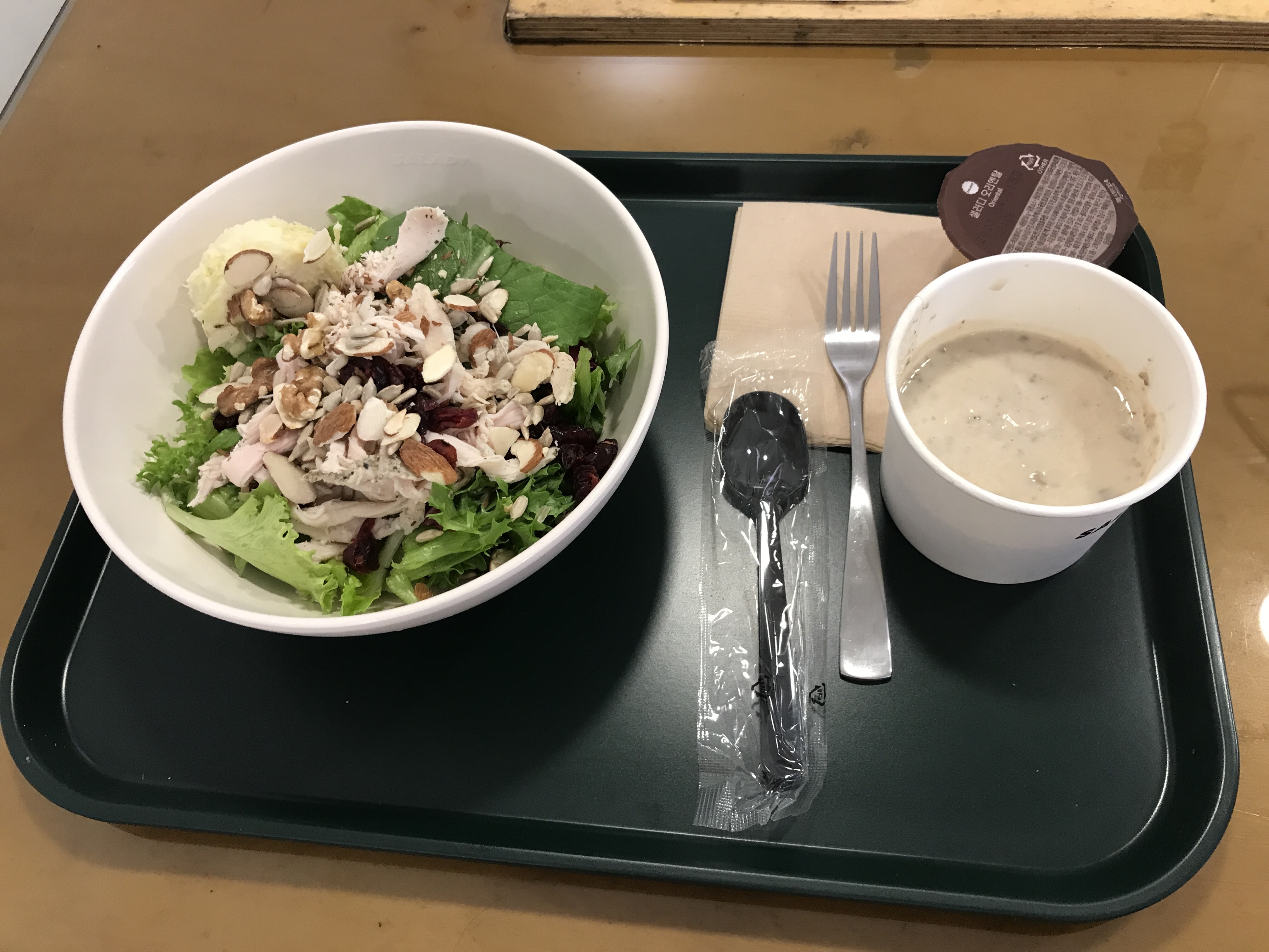 운동가기전 단탄지 치킨샐러드와 양송이스프 뇸뇸
