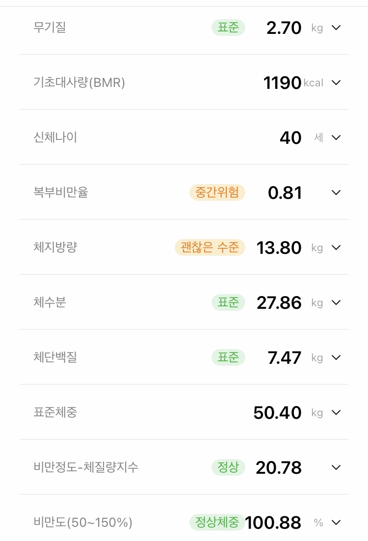 그래도 내장지방지수는 표준으로 나왔네 다행쓰.. ㅎㅎ