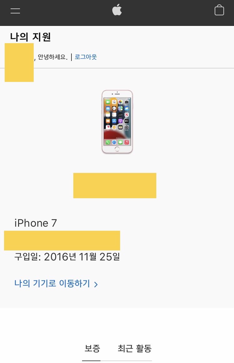 아이폰 공홈에서 돋보기 검색칸에 <나의 지원>이라고 검색해서 로그인한뒤 아래 이미지와 같이 확인이 바로 가능했다 ㅎㅎ