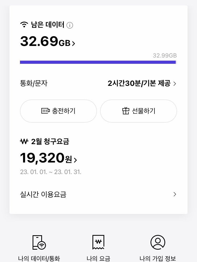 이번달 데이터가 32.69기가 ㅋㅋㅋㅋ