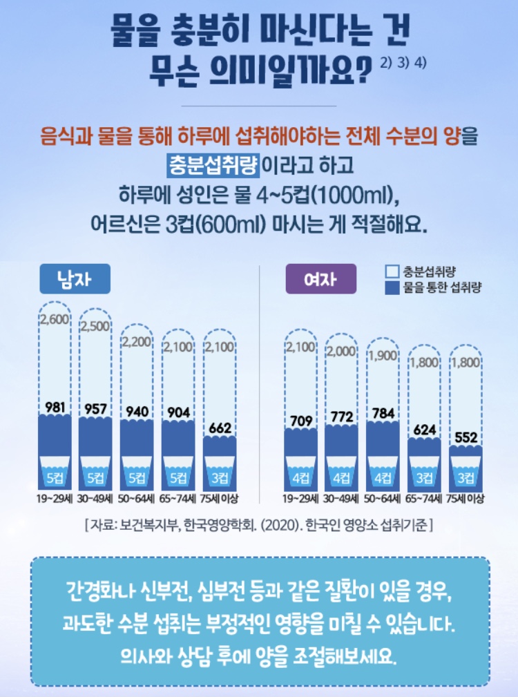 성인은 하루에 물 4~5컵은 마시는것이 좋다고 한다