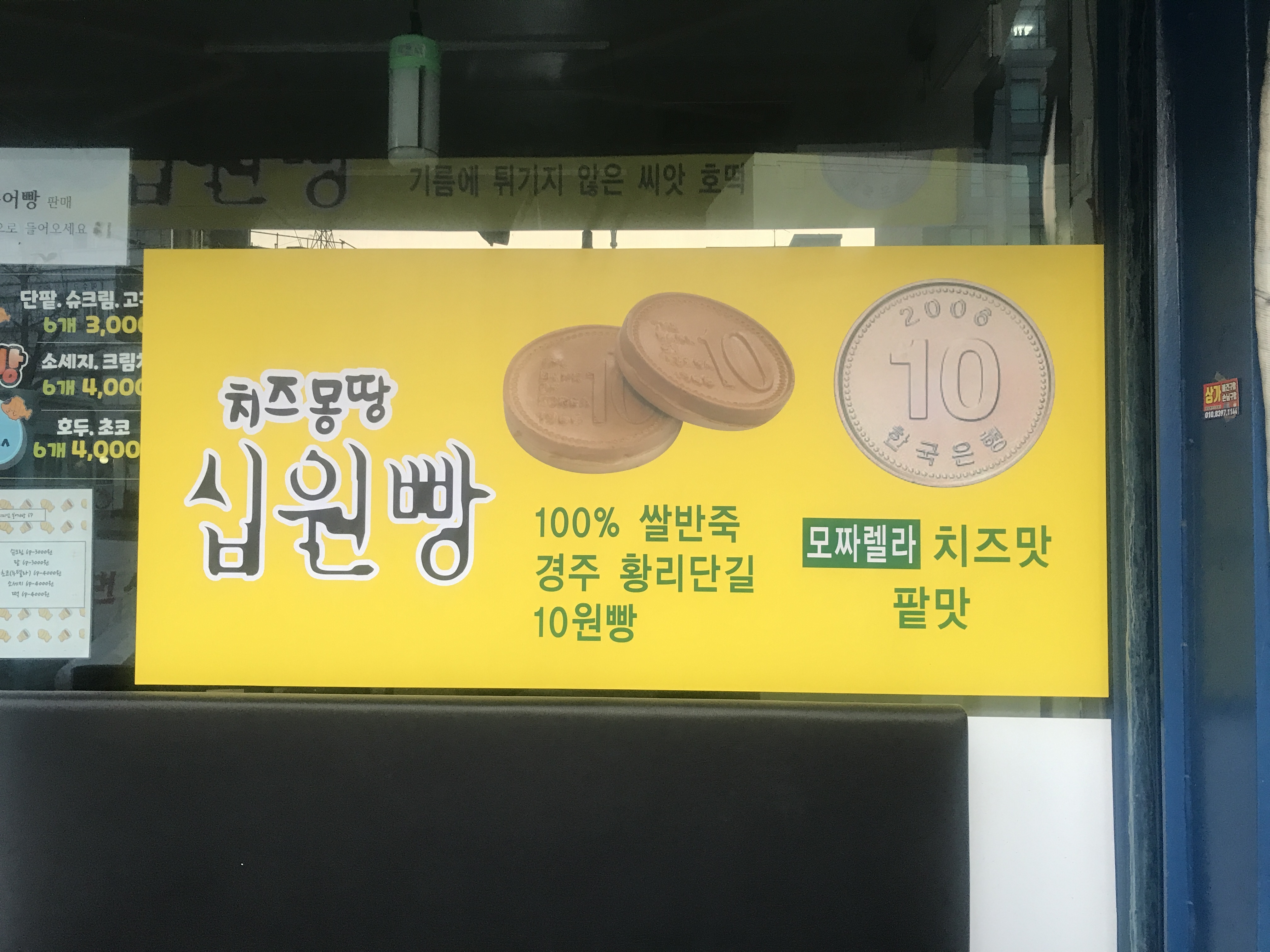 우리동네에 죽도령 가게에서 치즈몽땅 십원빵을 개시했다 ㅎㅎ